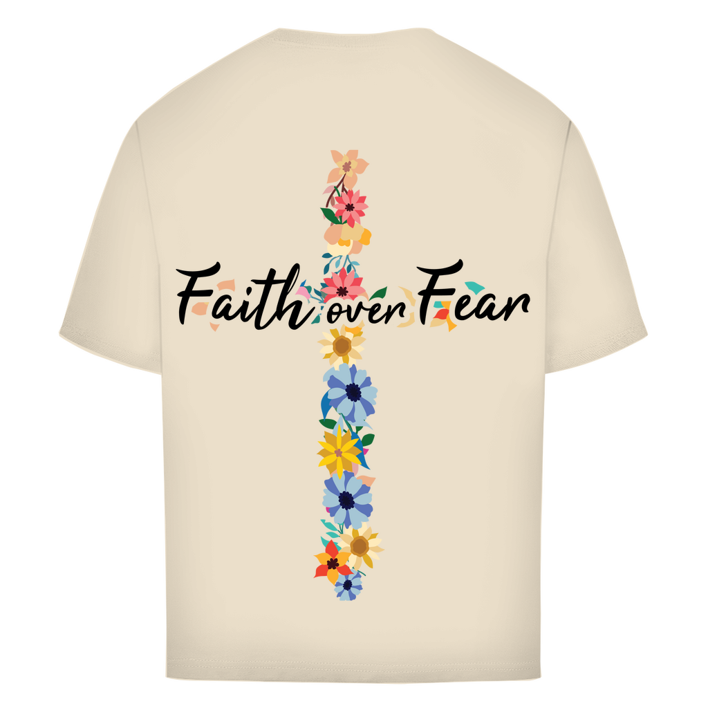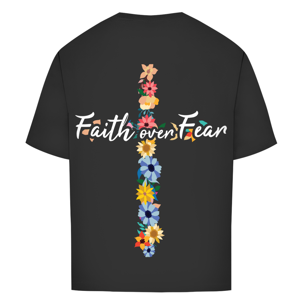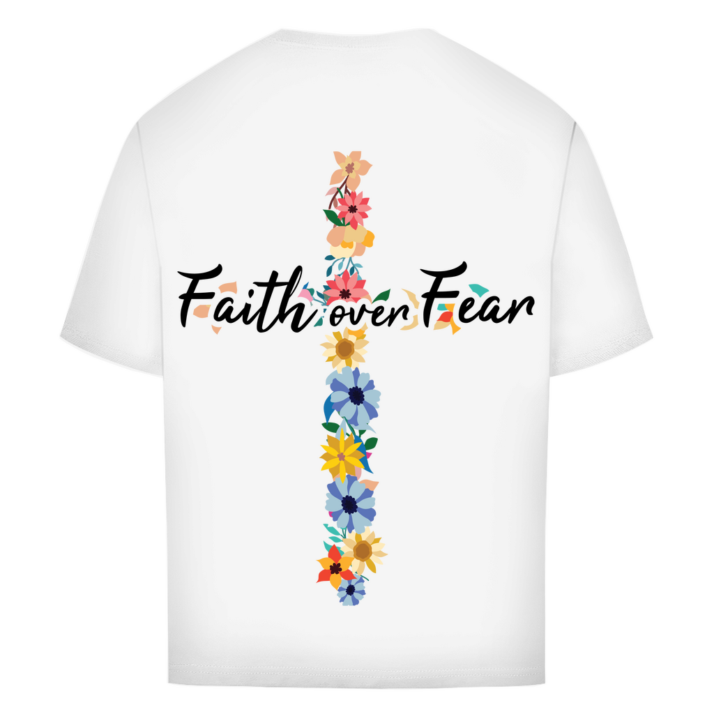 Oversize T-Shirt faith over fear blumen kreuz