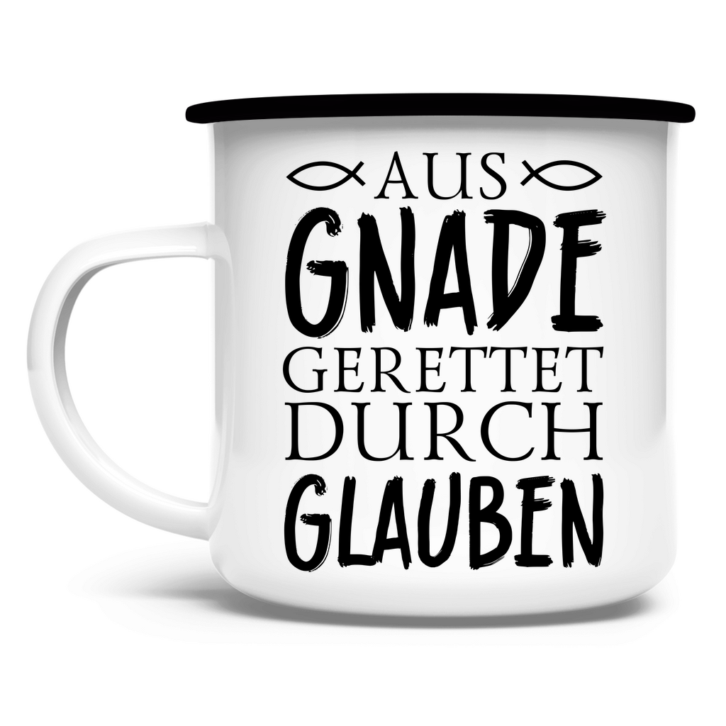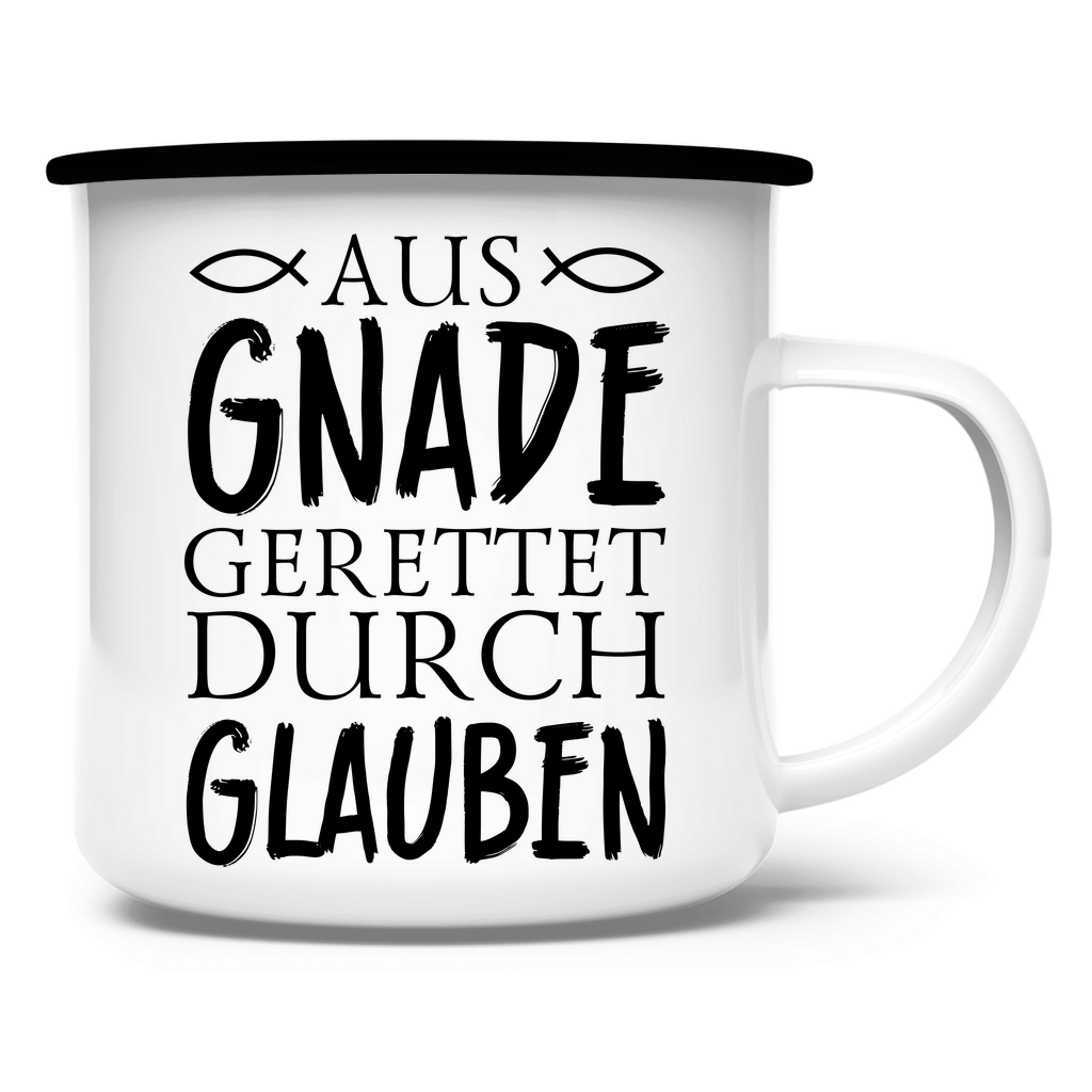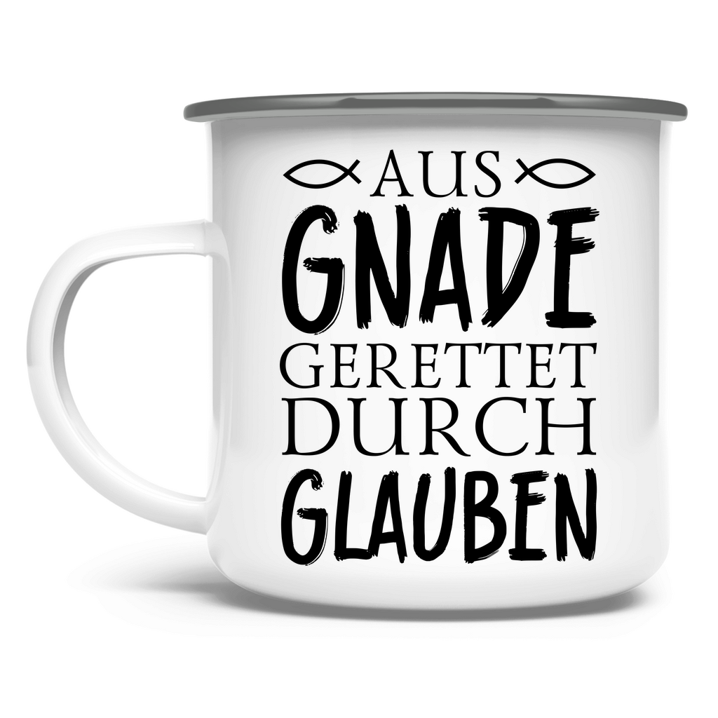 Emaille Tasse aus gnade gerettet