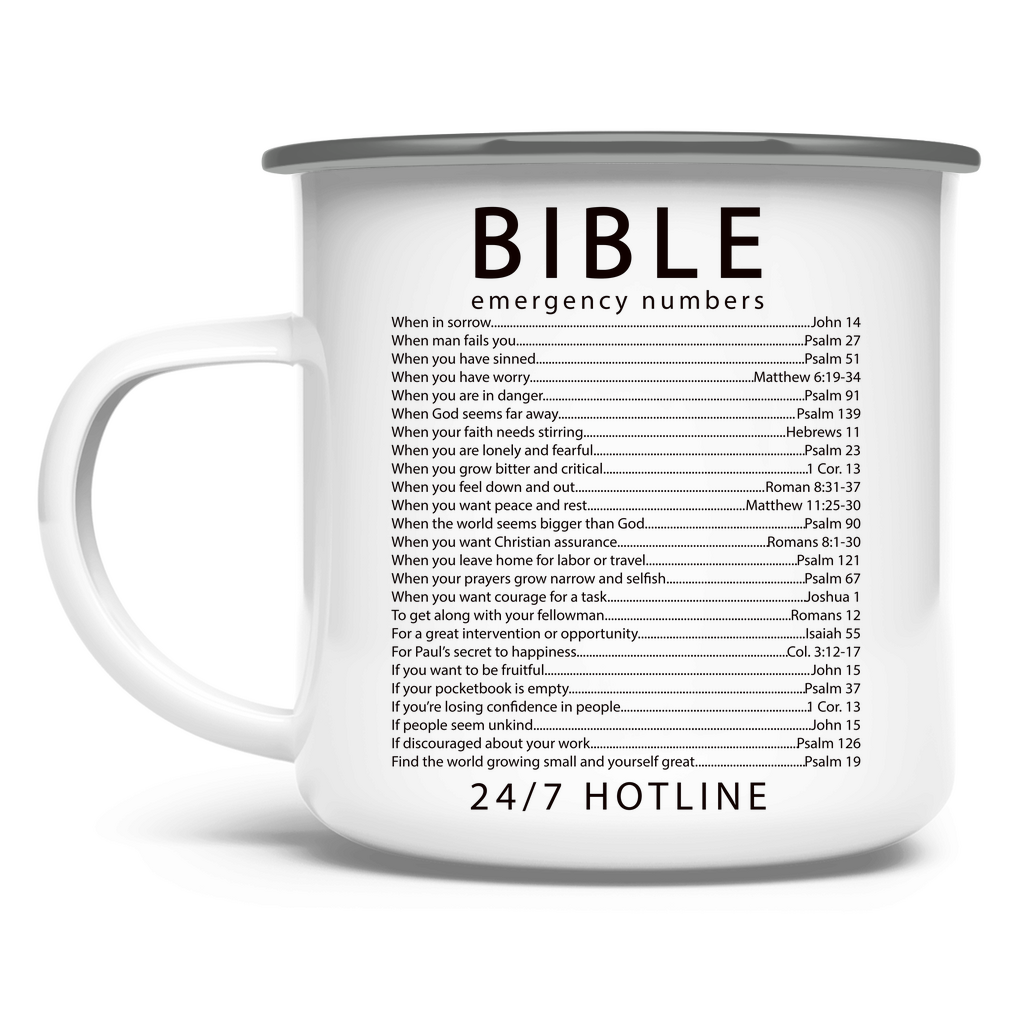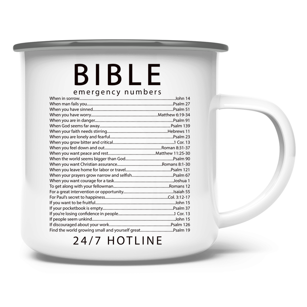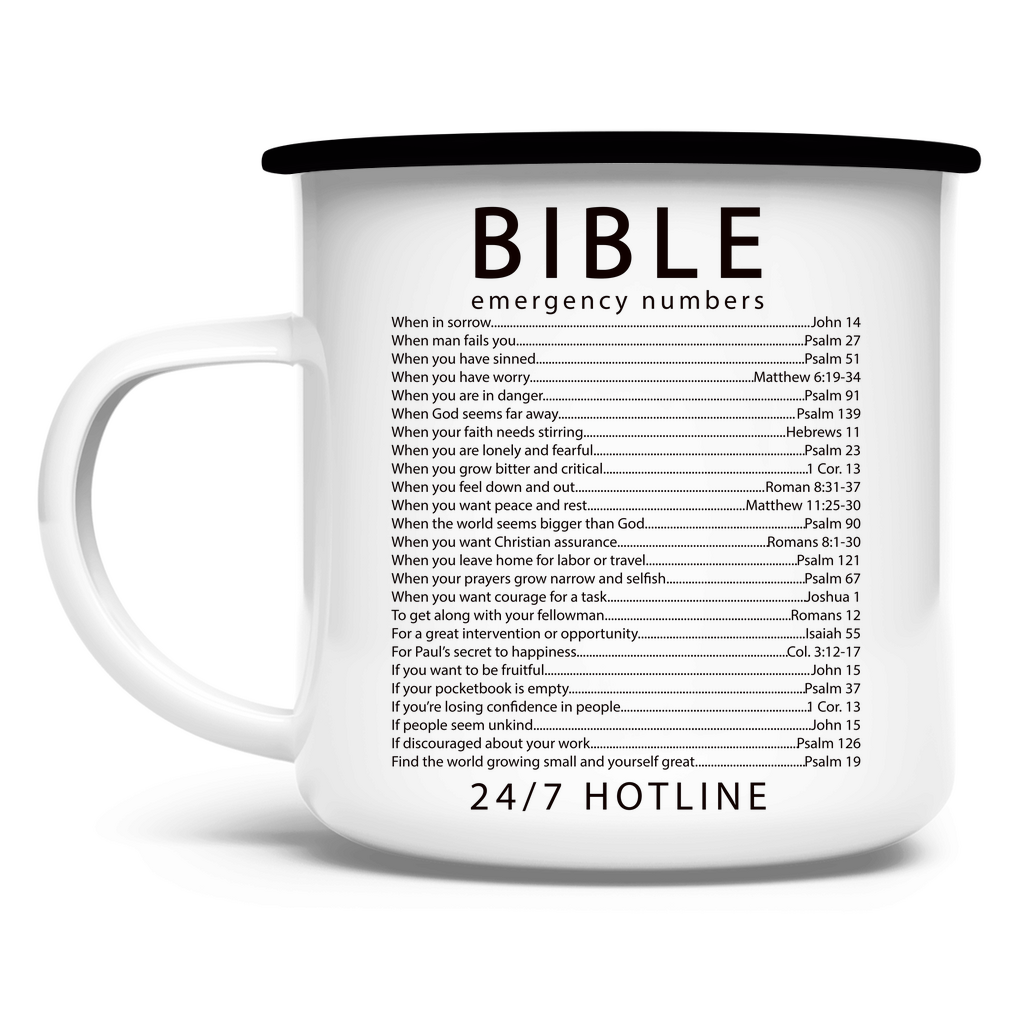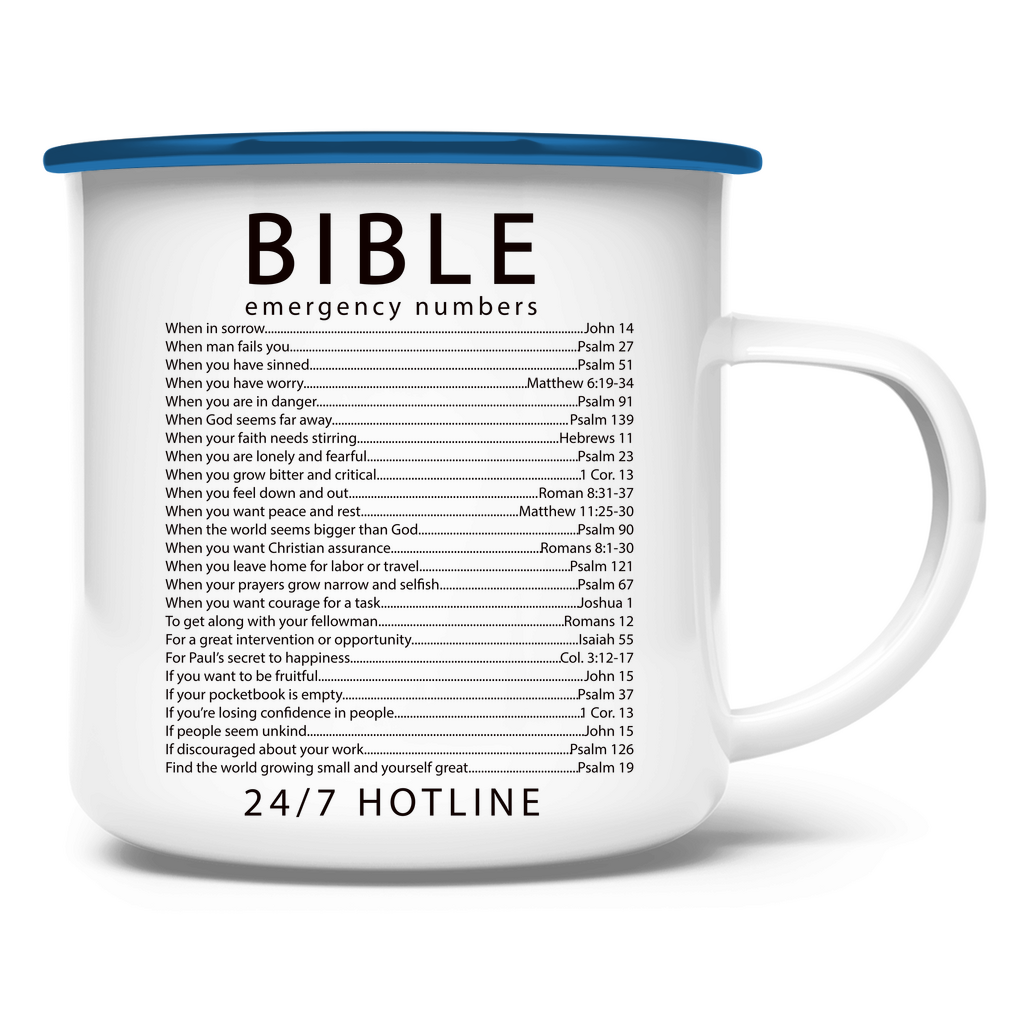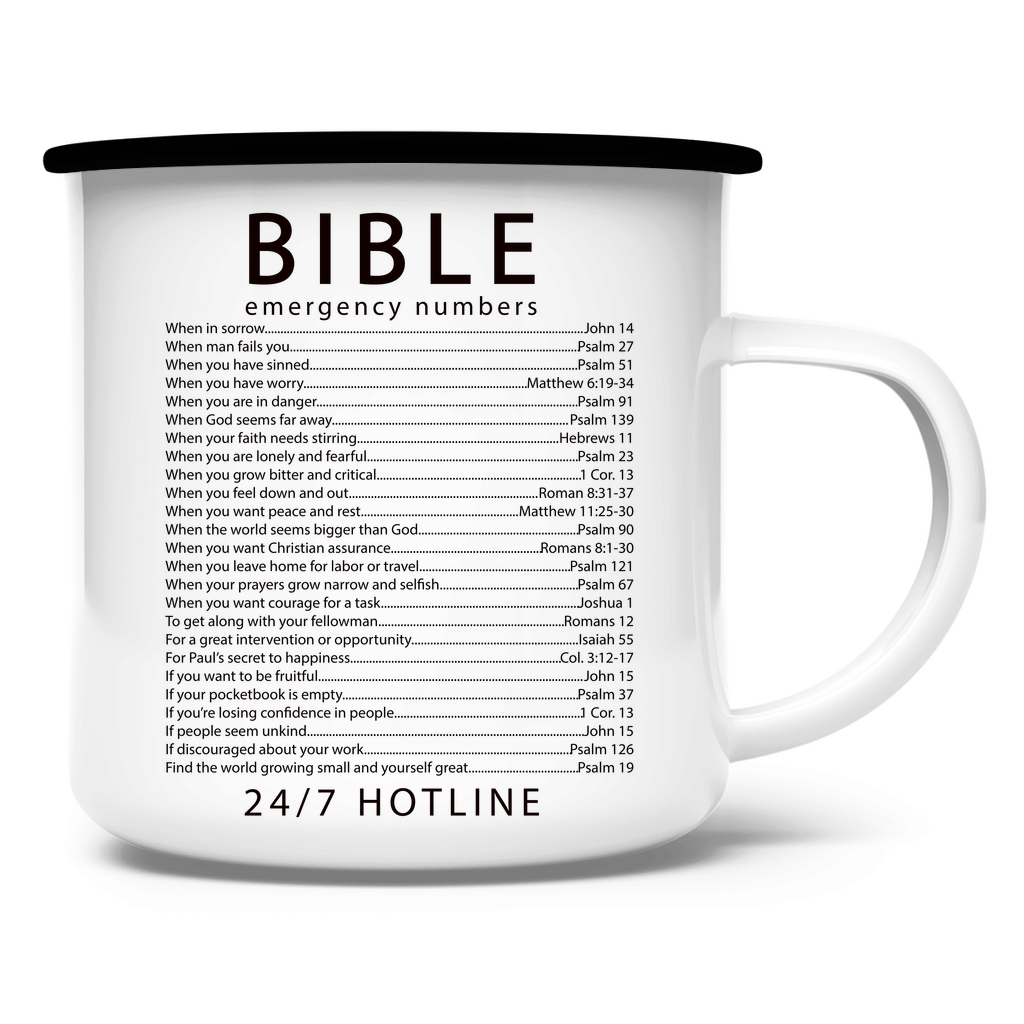 Emaille Tasse bible emegrency numbers