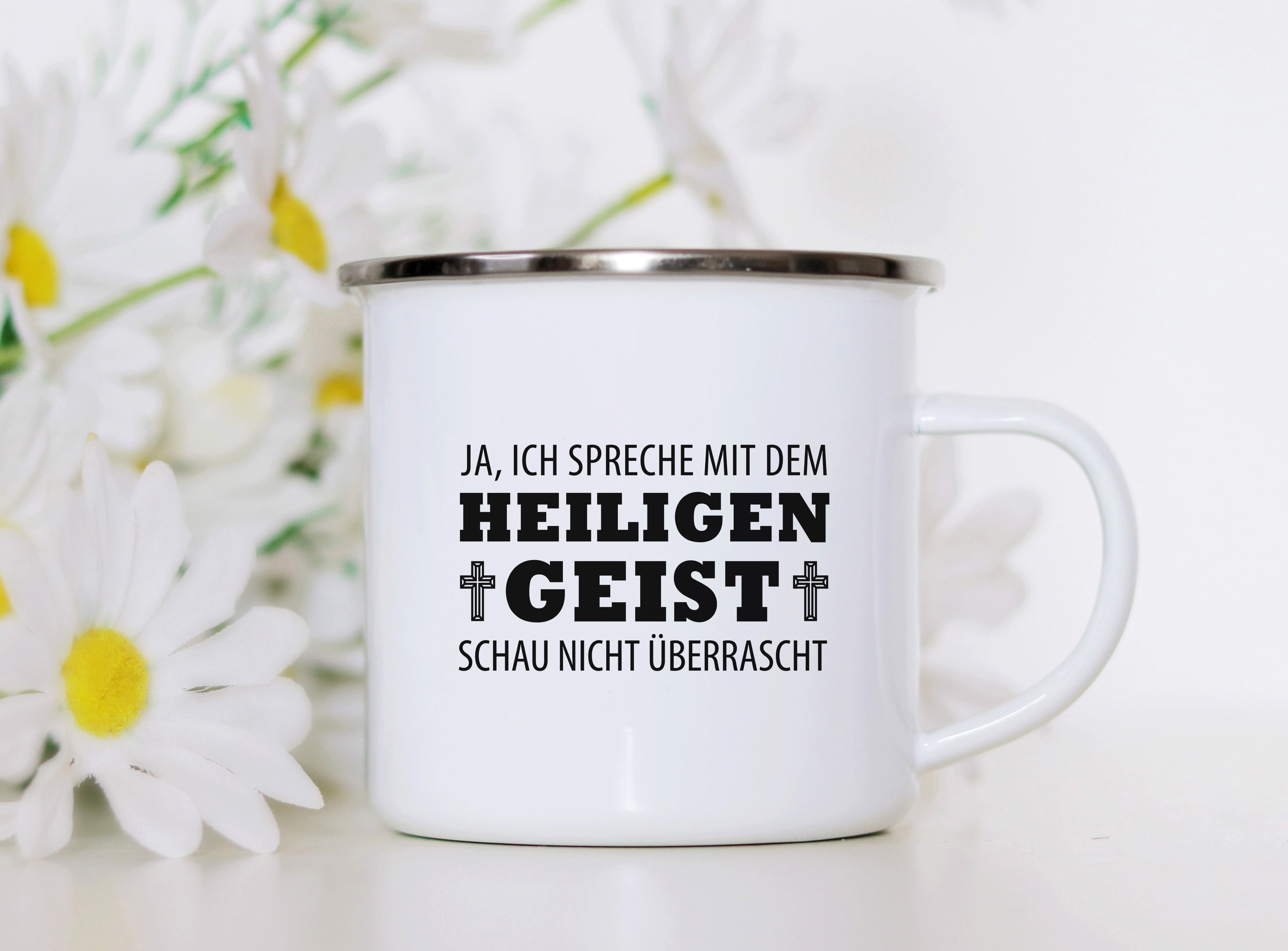 Emaille Tasse ich spreche mit dem heiligen geist