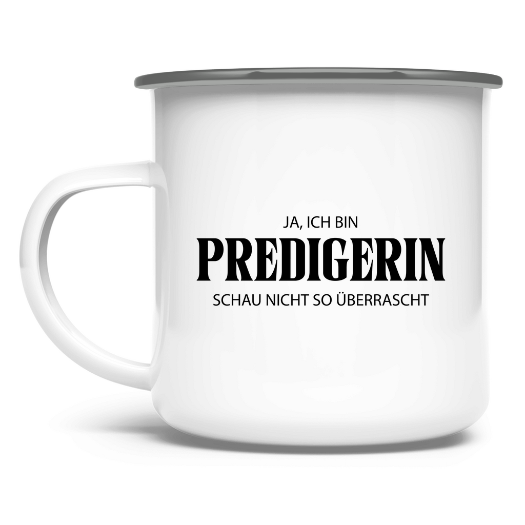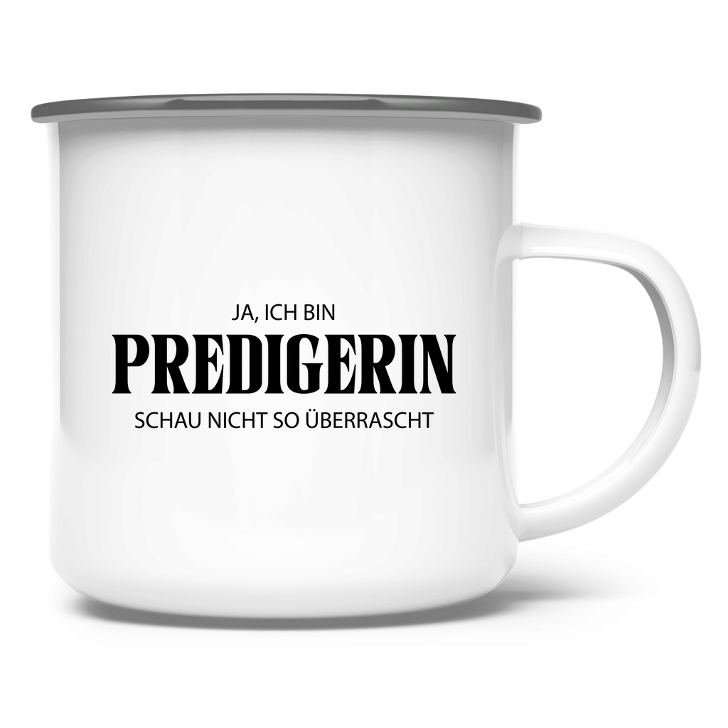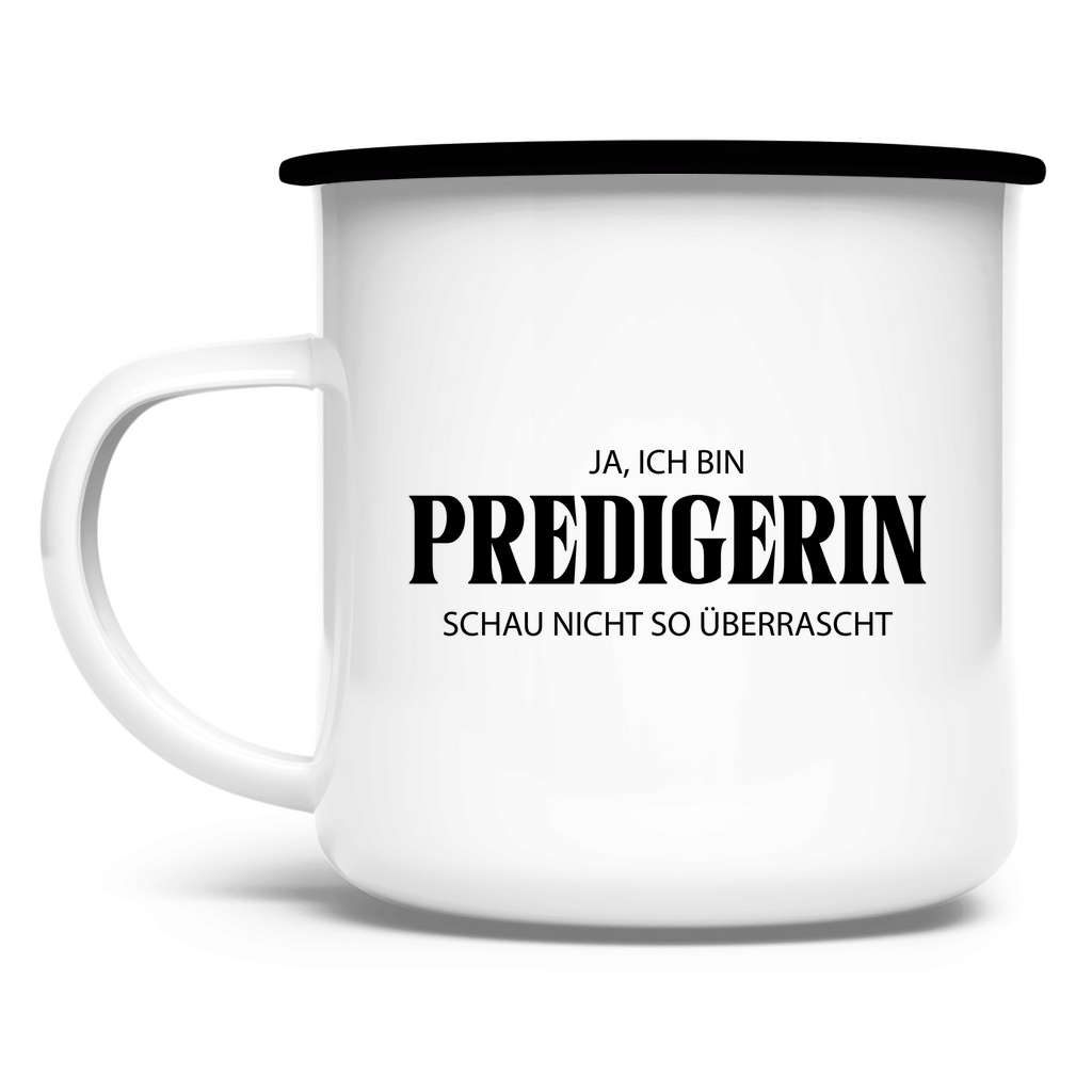 Emaille Tasse ja, ich bin predigerin