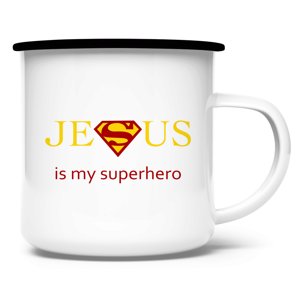 Emaille Tasse jesus is my superhero