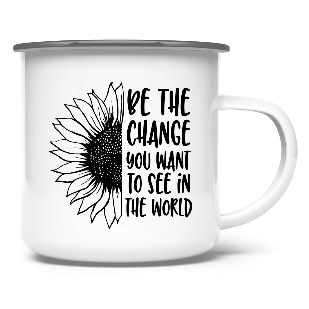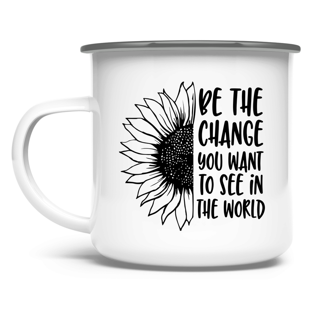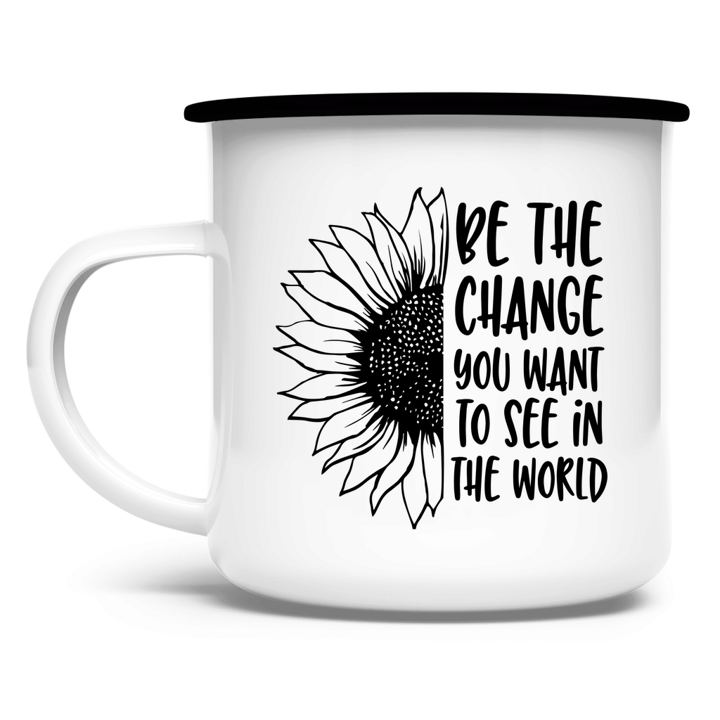 Emaille Tasse sonnenblume be the change