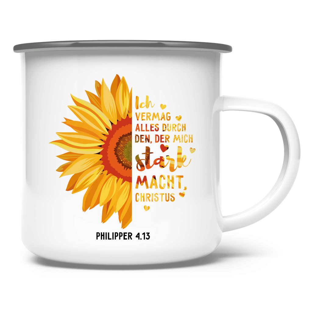Emaille Tasse sonnenblume ich vermag alles