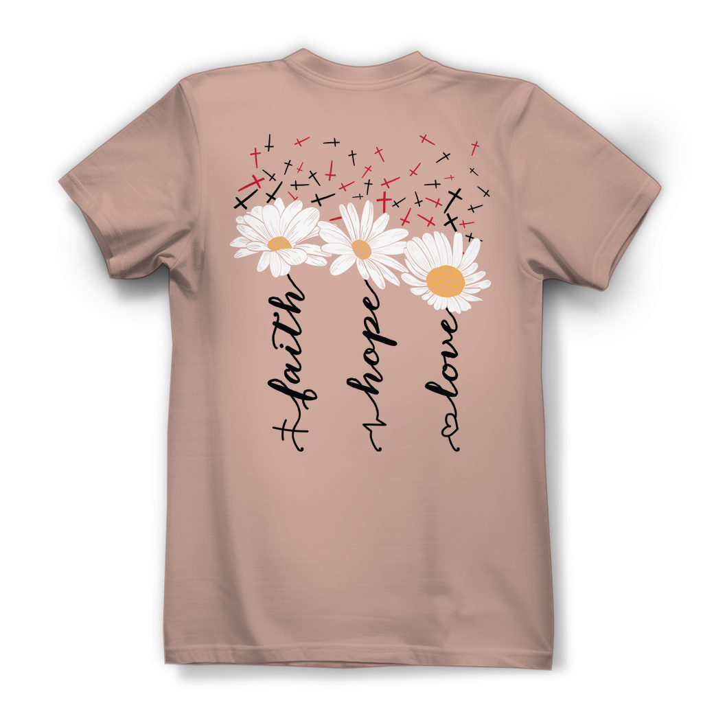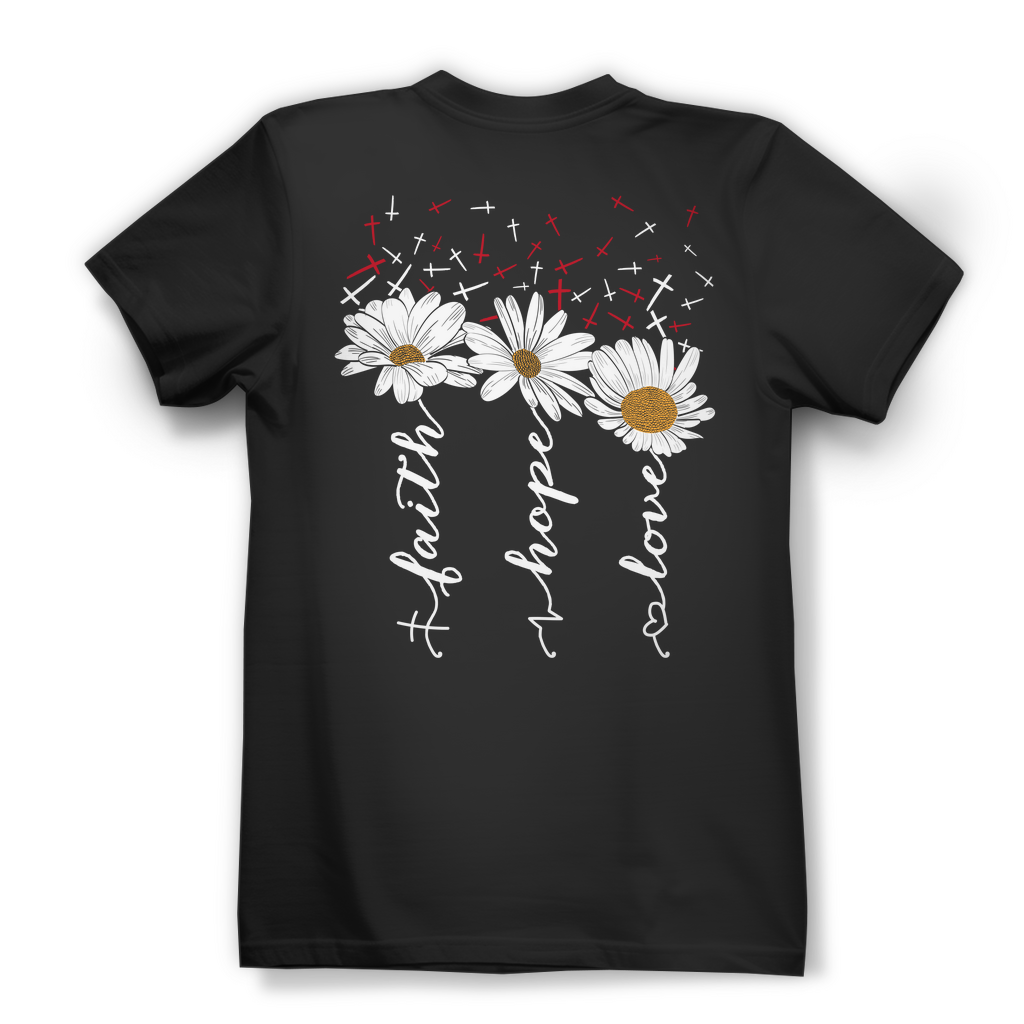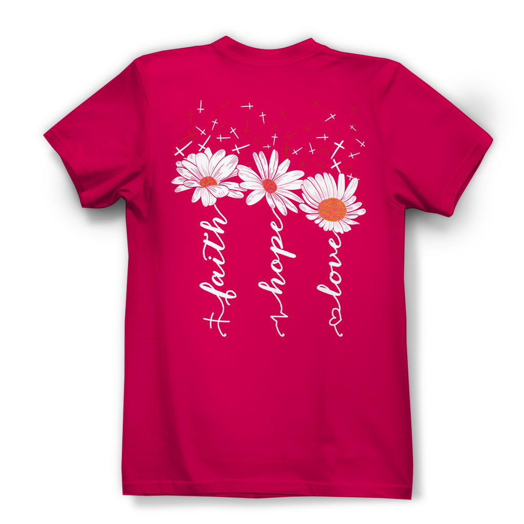 Damen Bio T-Shirt faith hope love blumen
