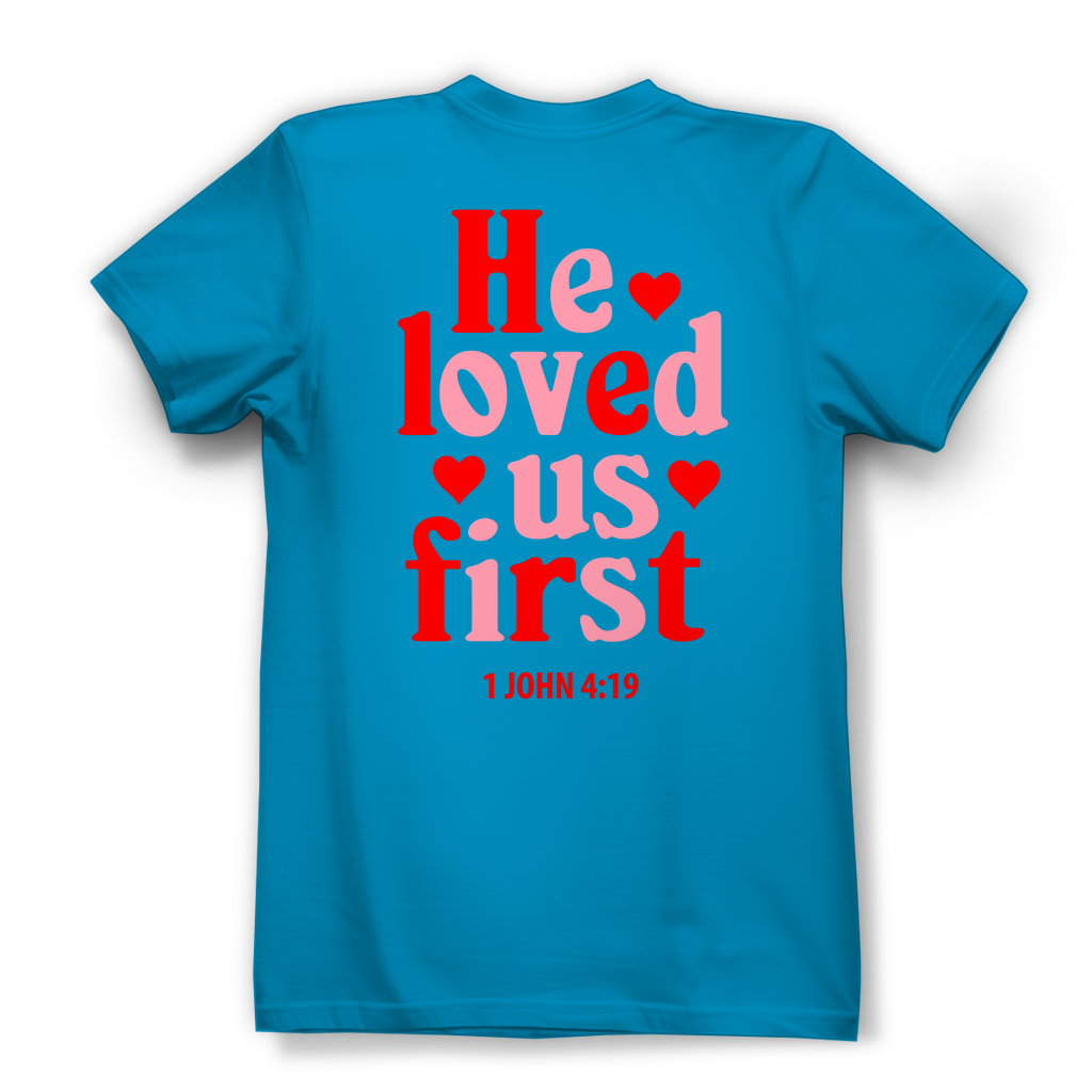 Damen Bio T-Shirt he loved us first 1 john 4:19