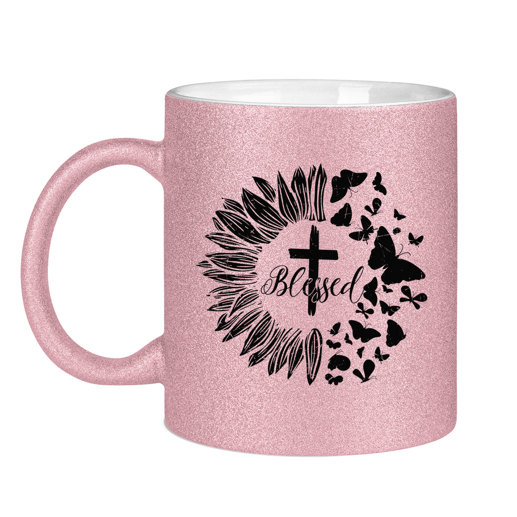 Glitzertasse blessed sonneblume schmetterling