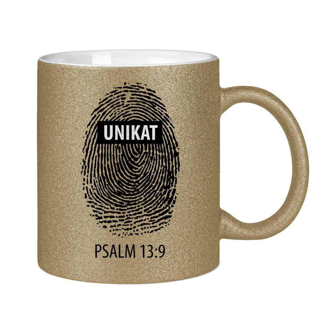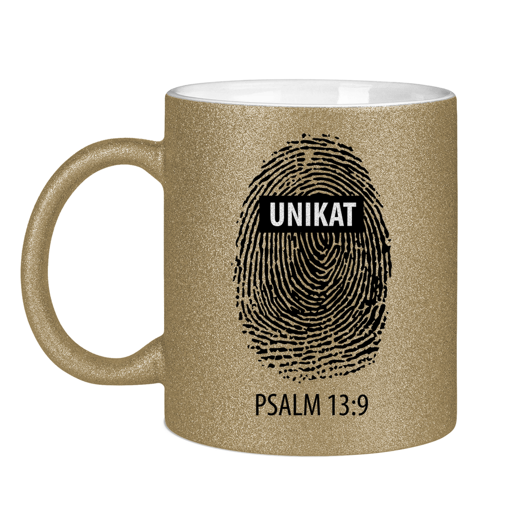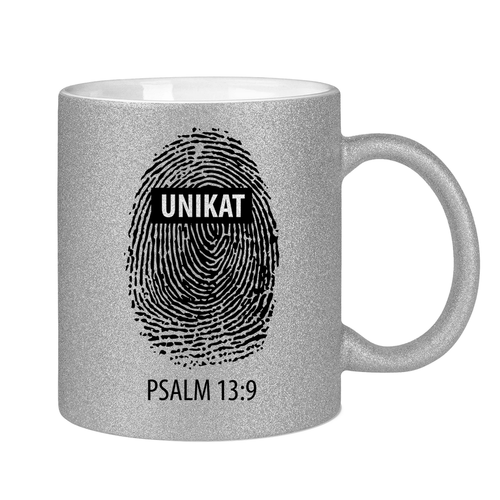 Glitzertasse unikat fingerabdruck psalm 13:9