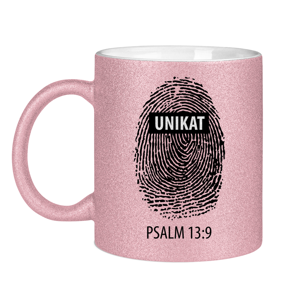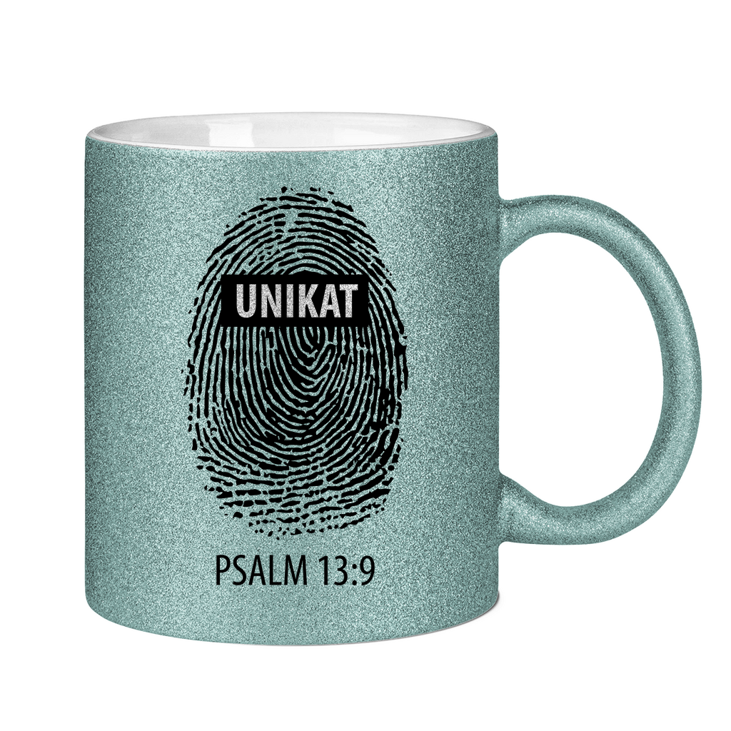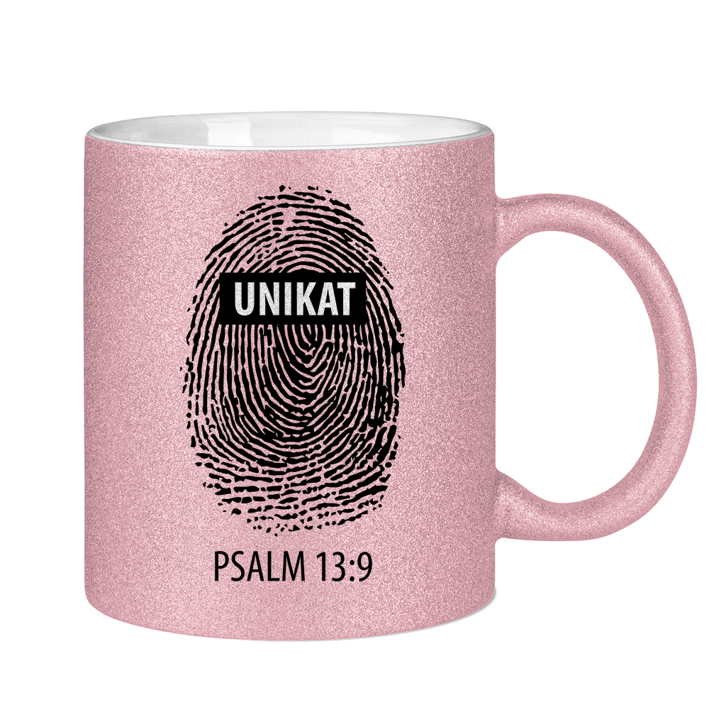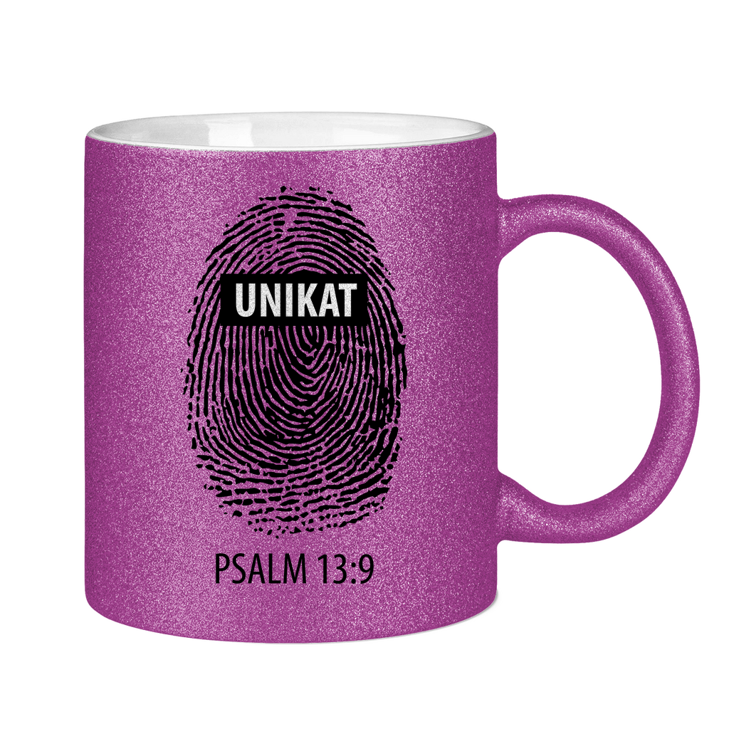 Glitzertasse unikat fingerabdruck psalm 13:9