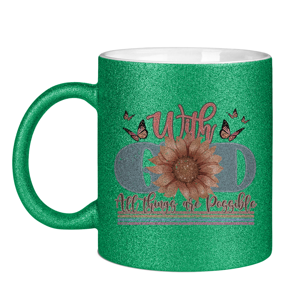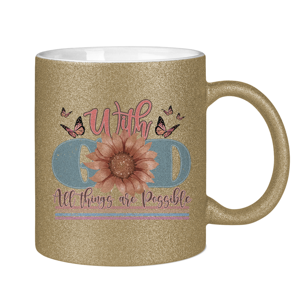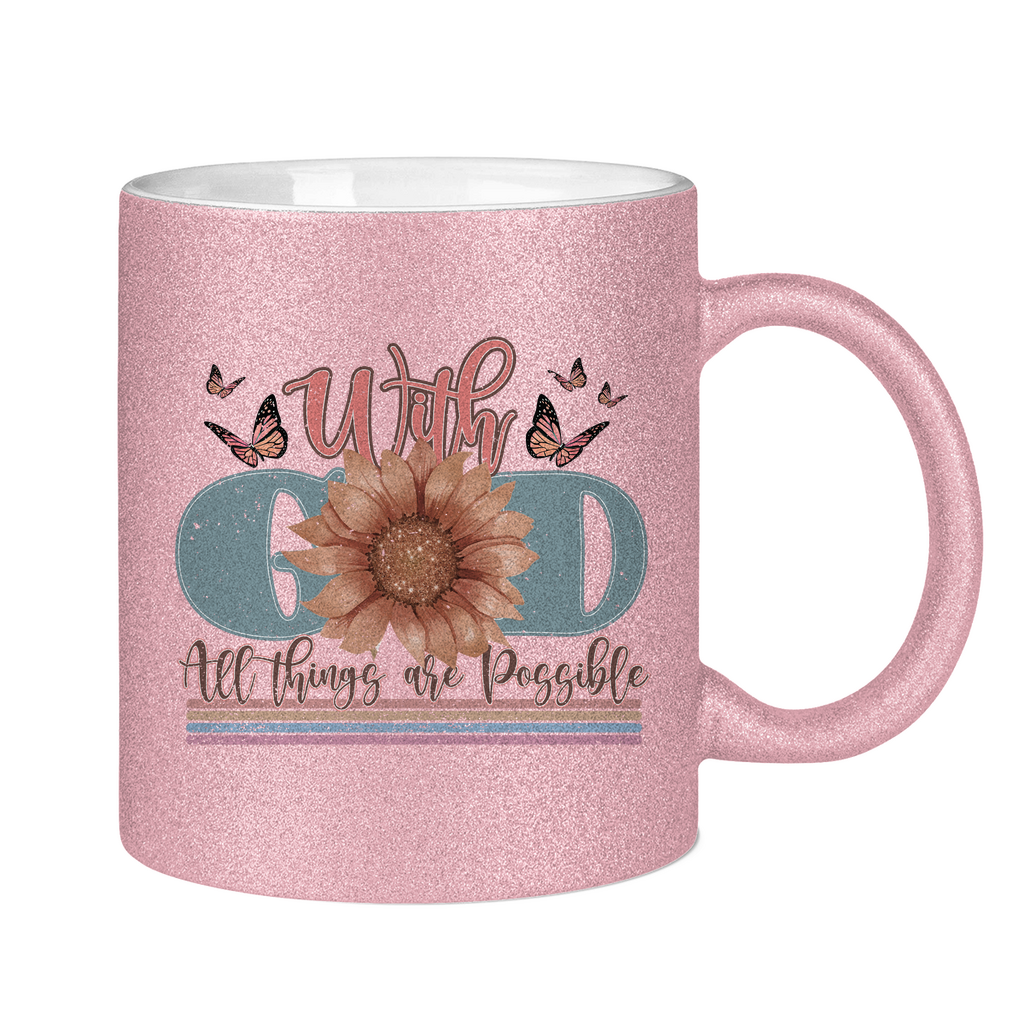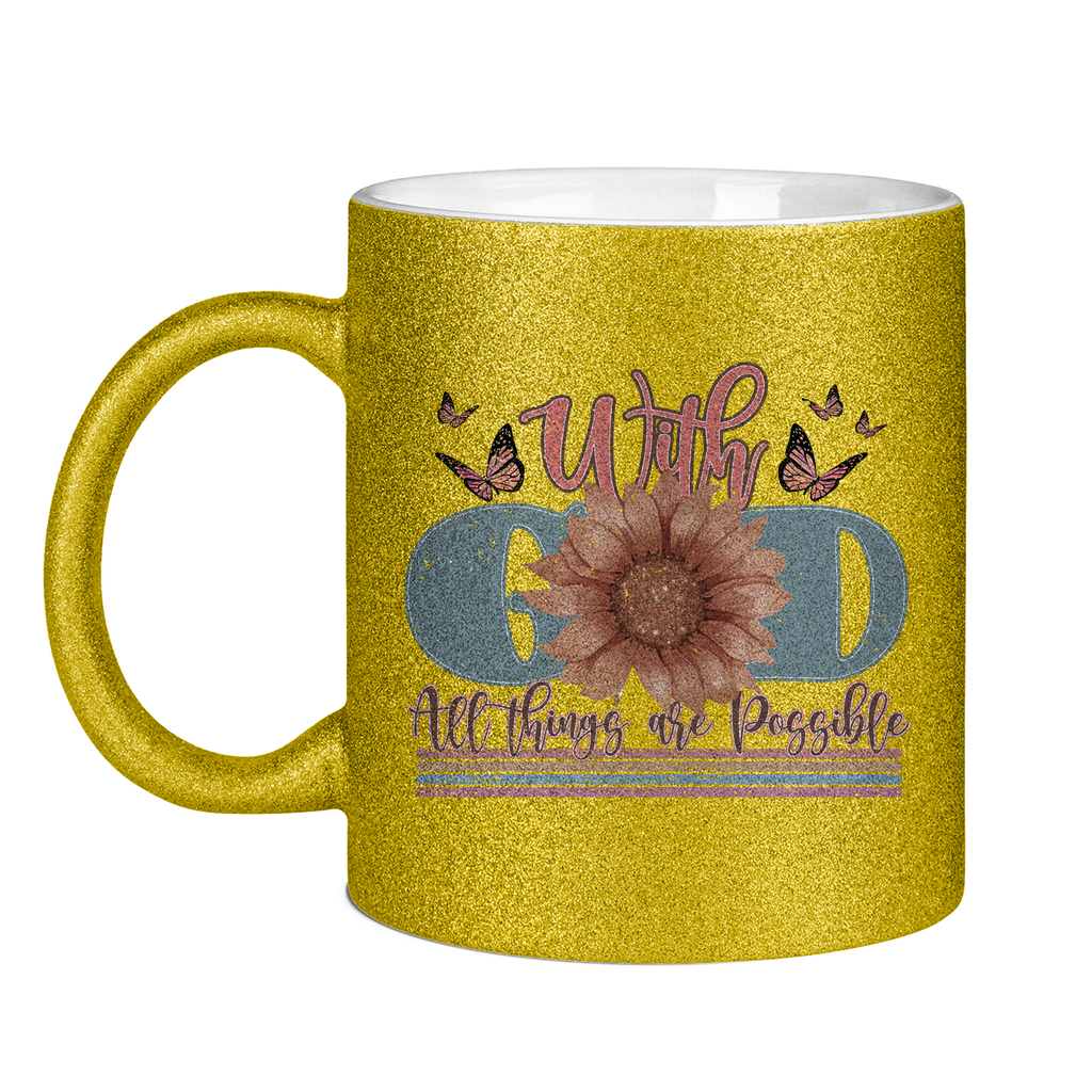 Glitzertasse with god all things are possible