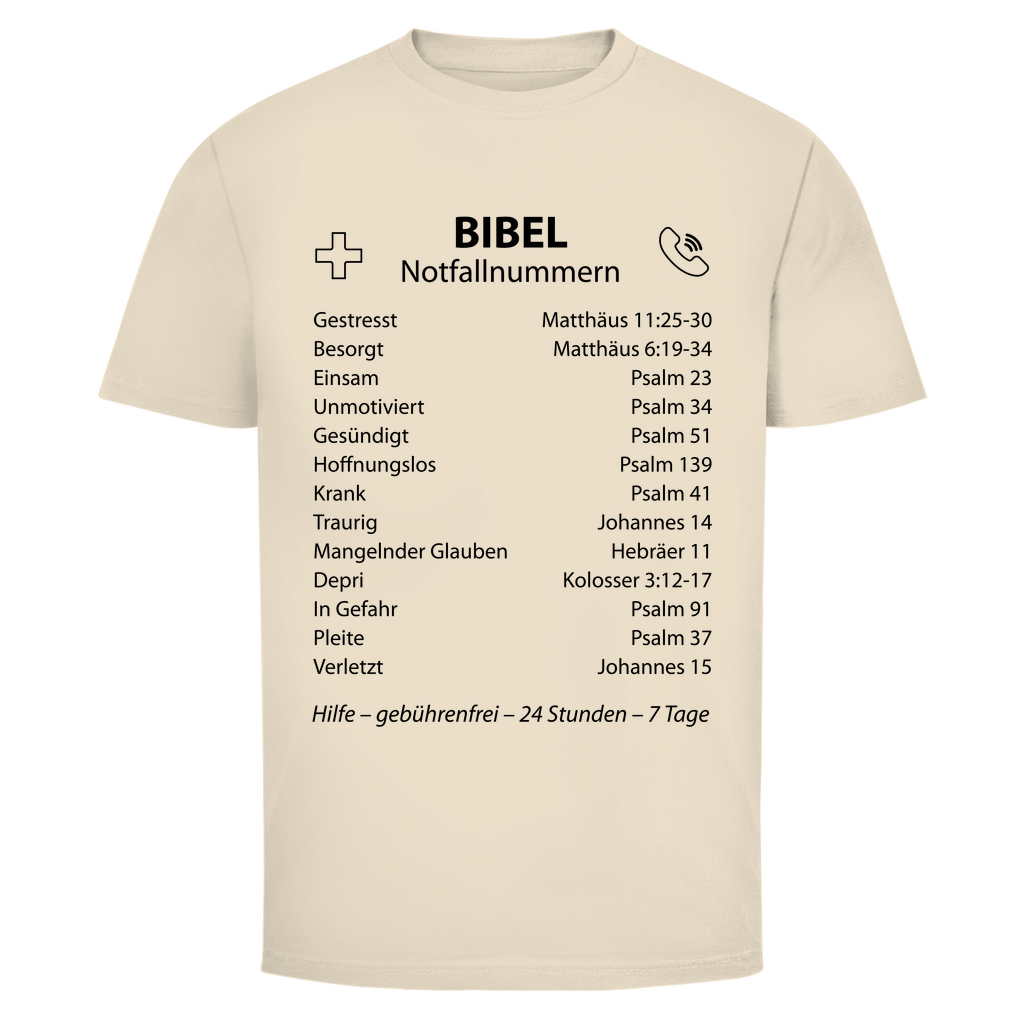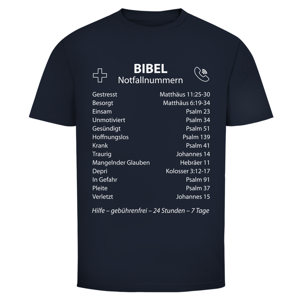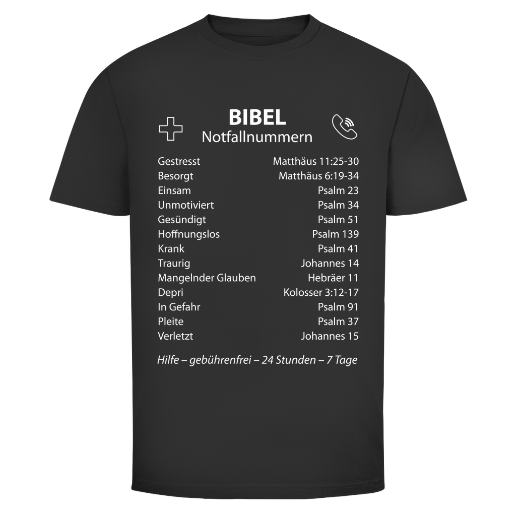 Herren T-Shirt bibel notfallnummern