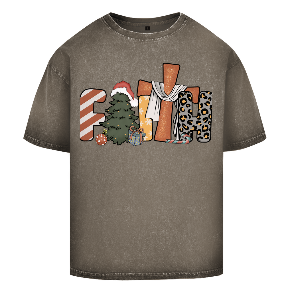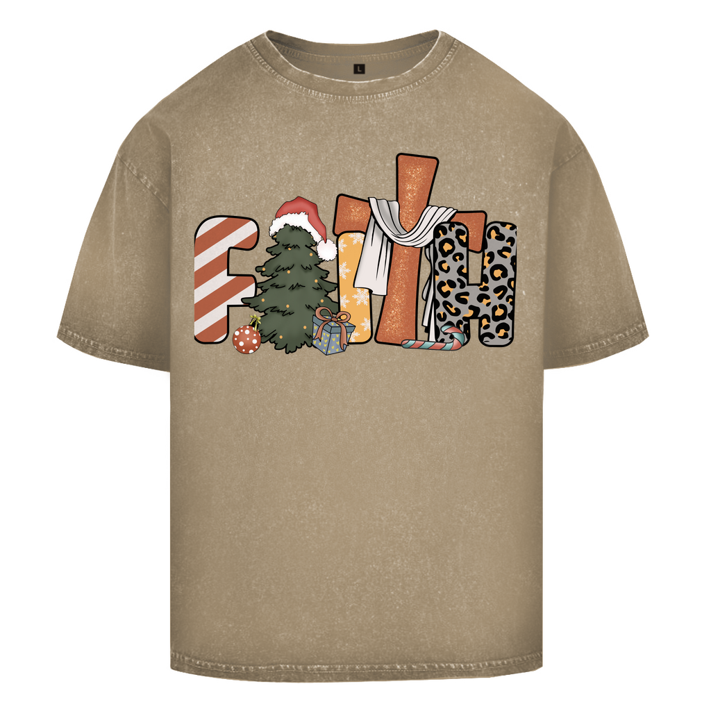 Oversize Washed T-Shirt faith weihnachtsmotiv