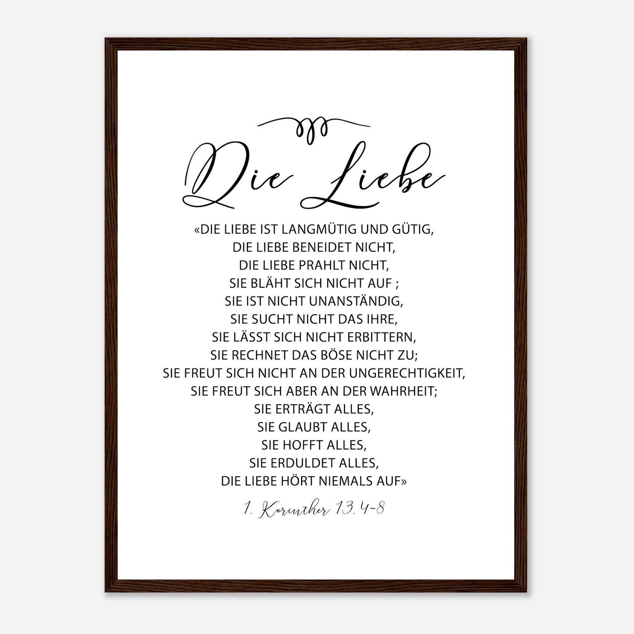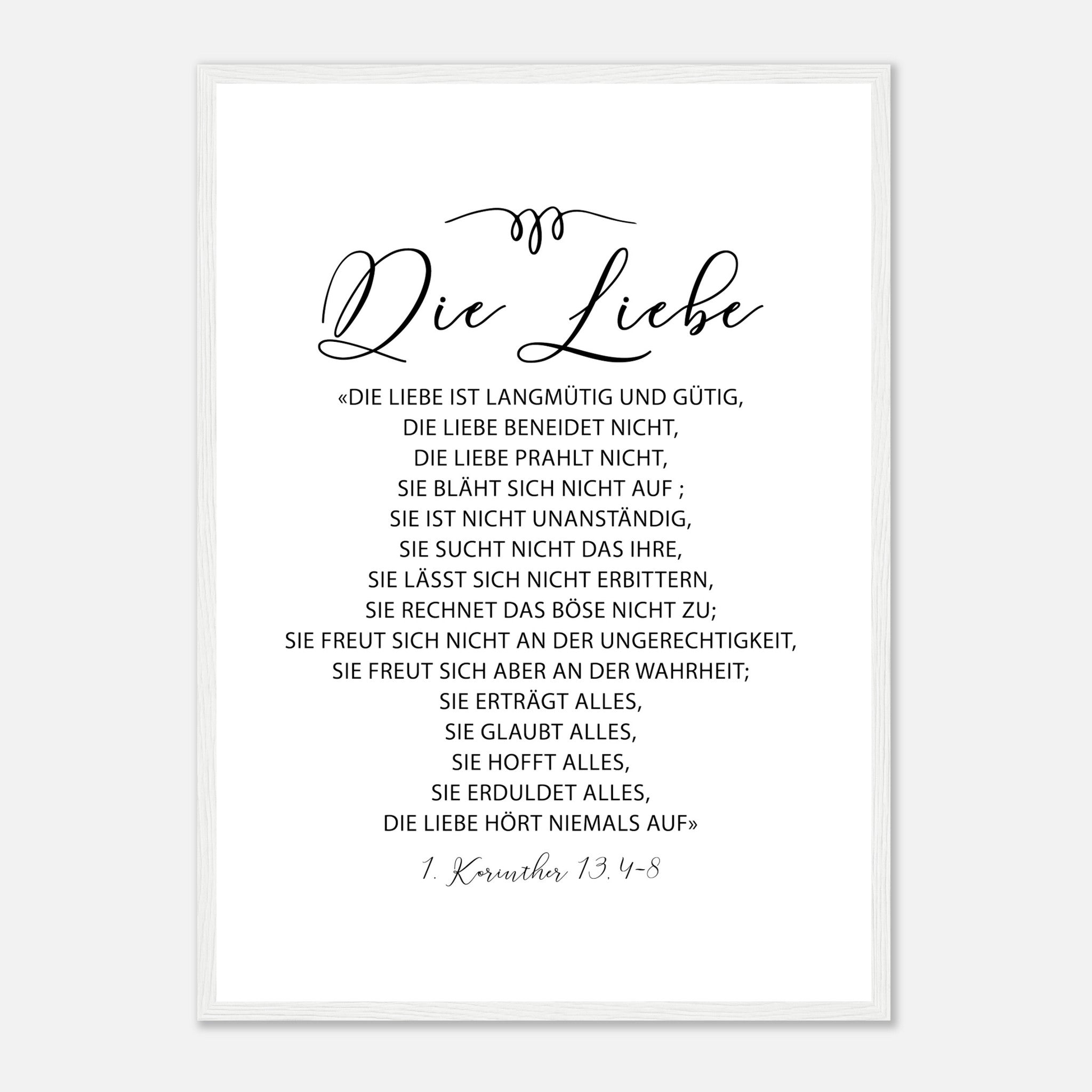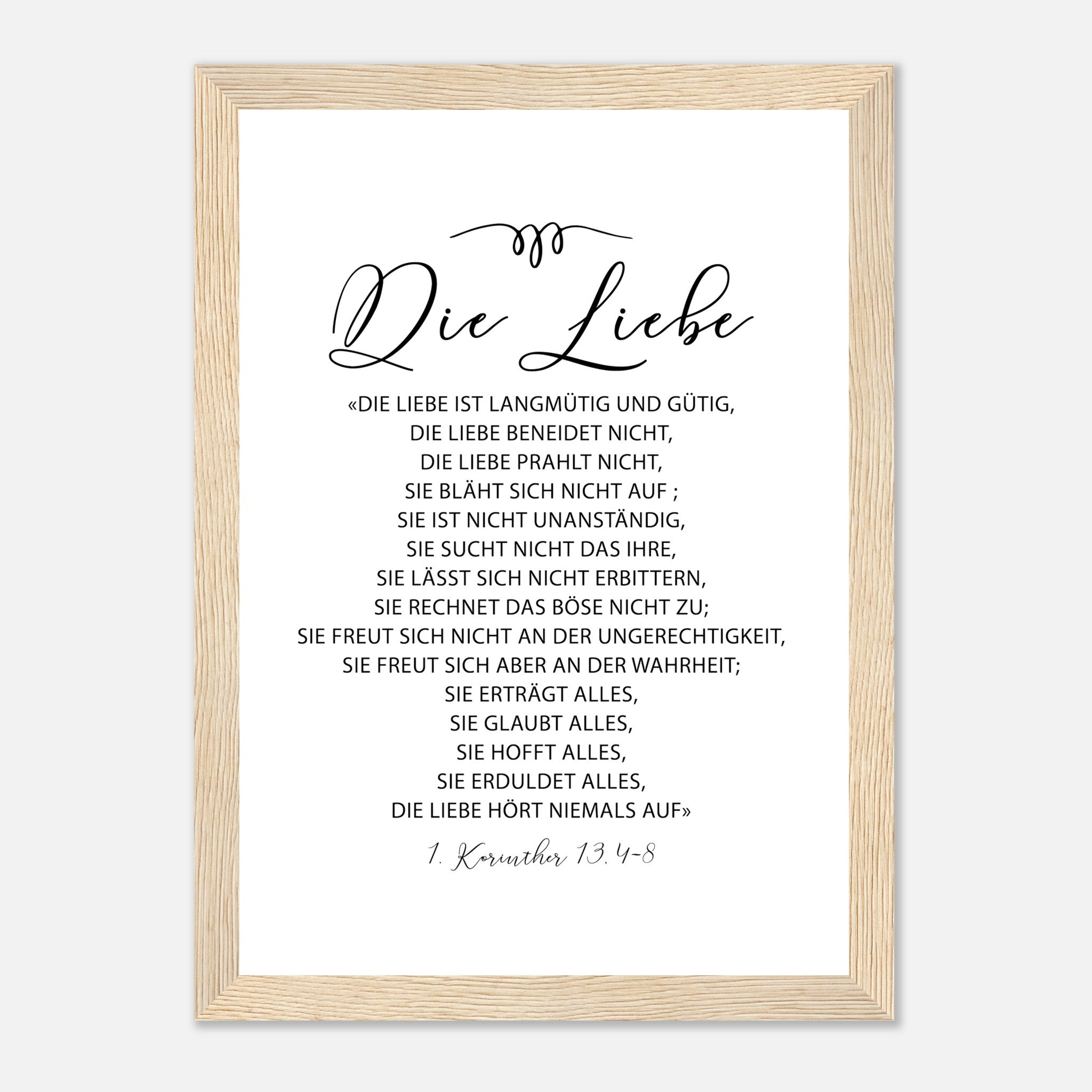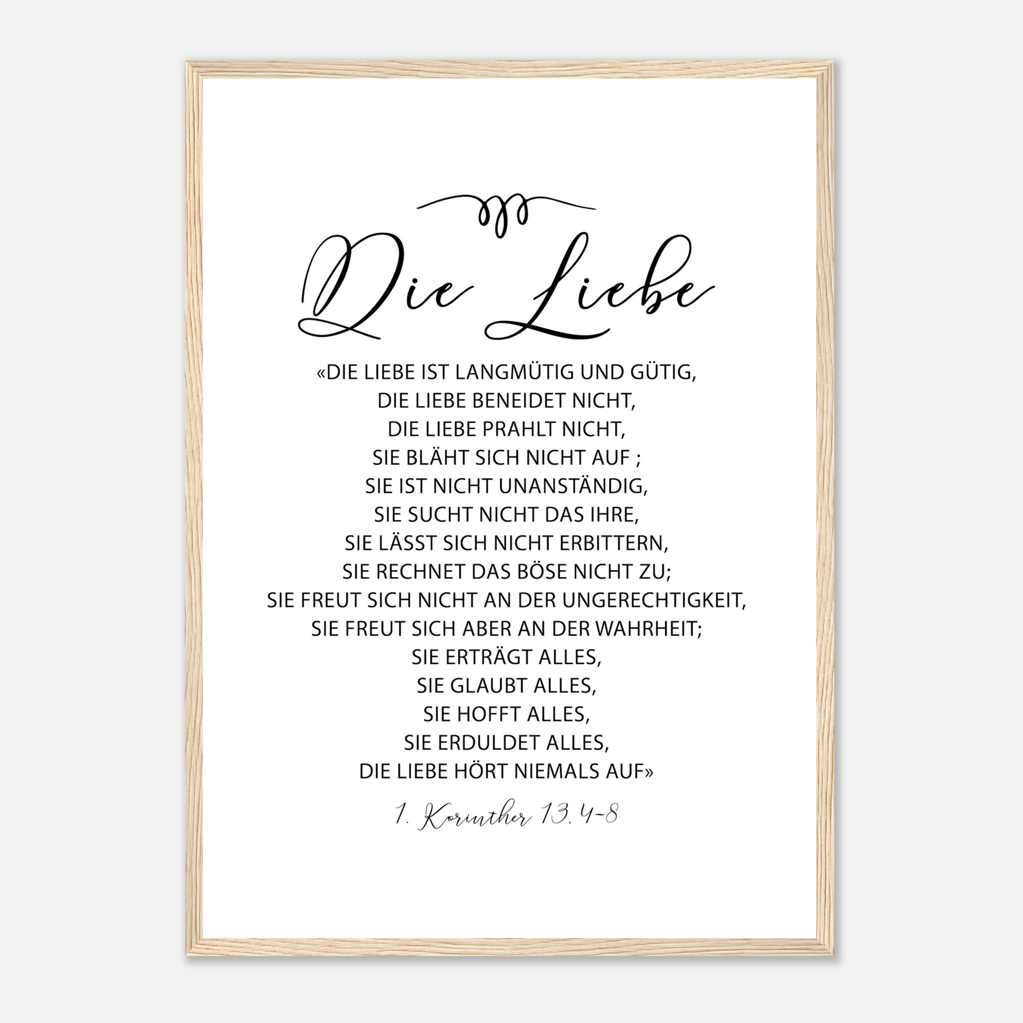 die liebe 1 korinther 13.4-8 Poster mit Holzrahmen