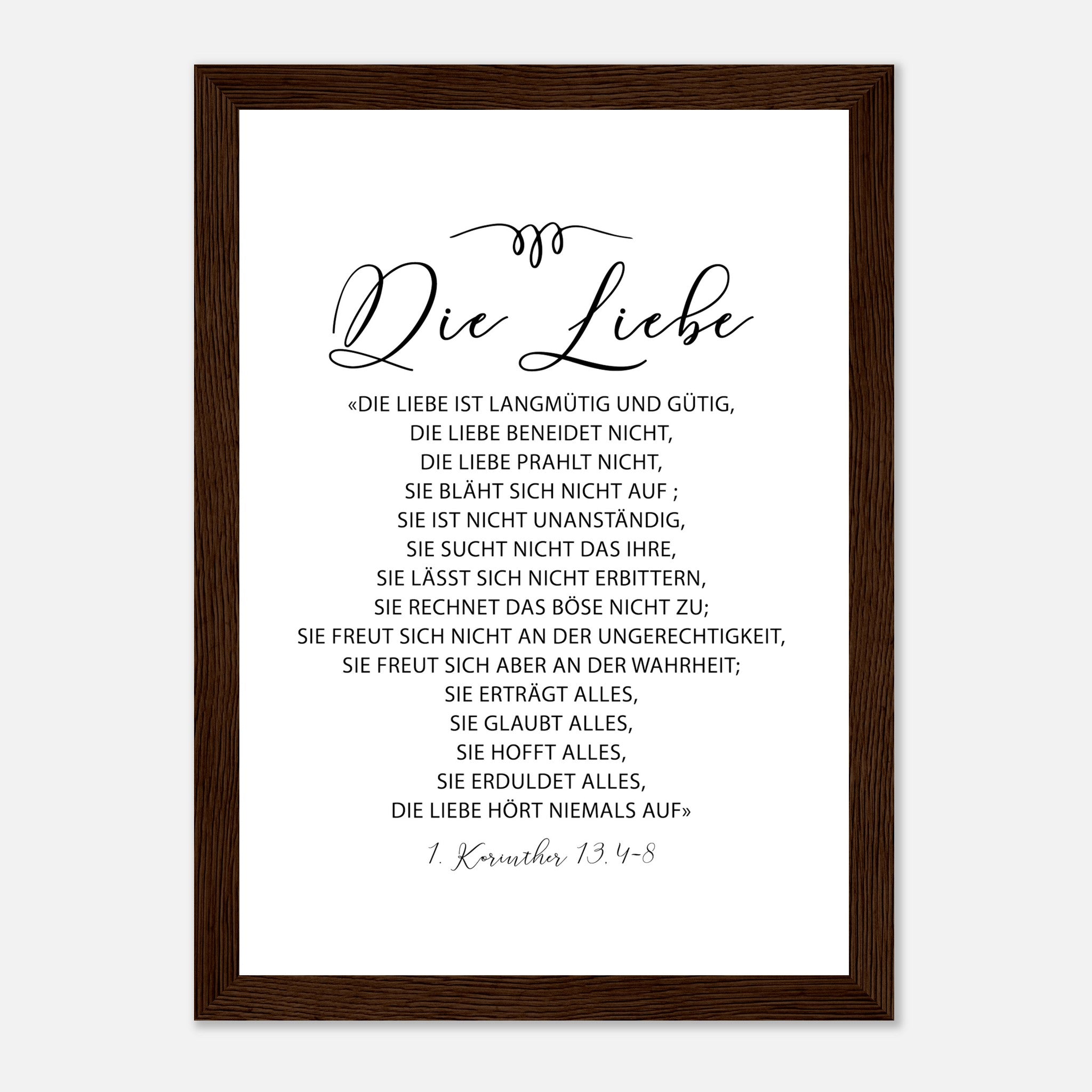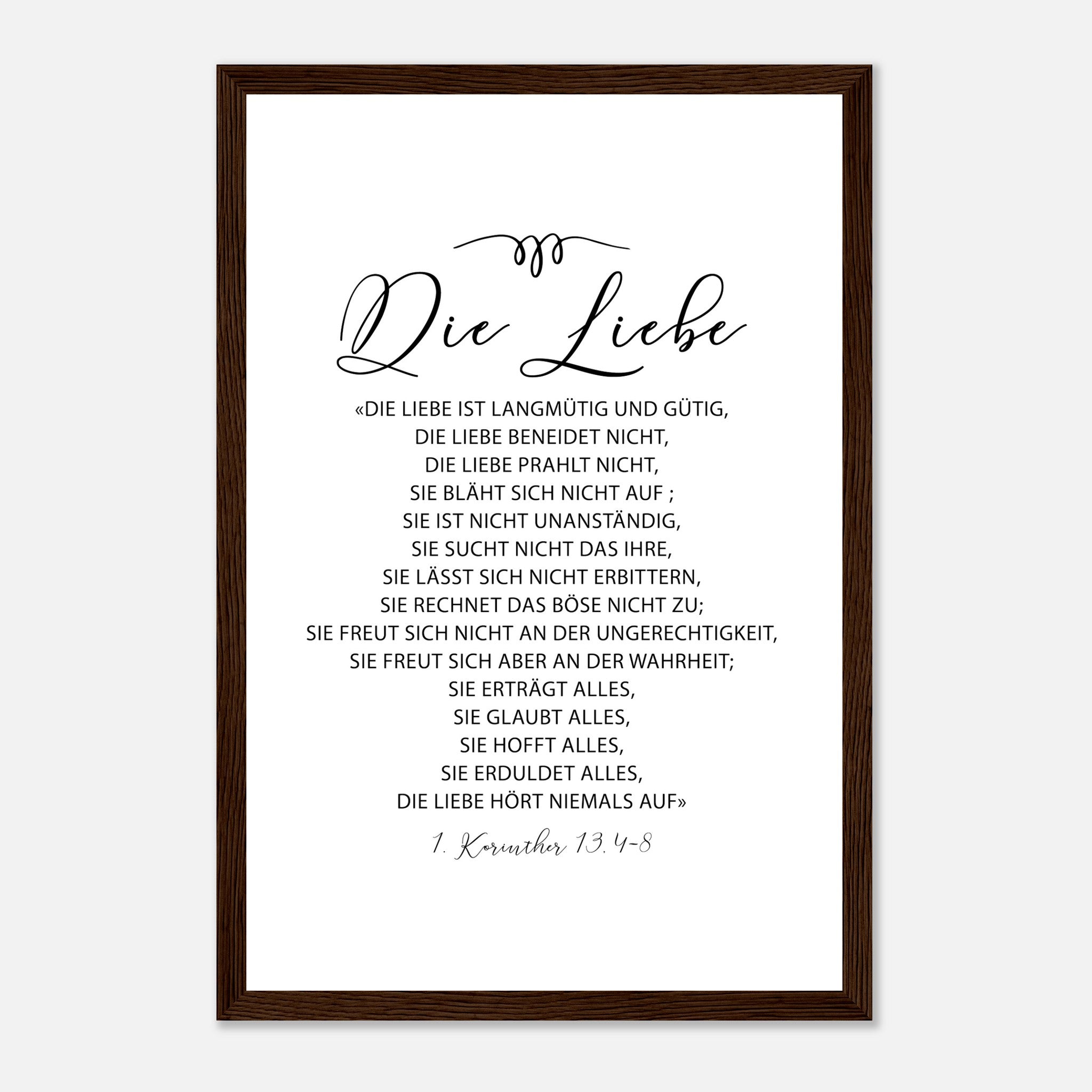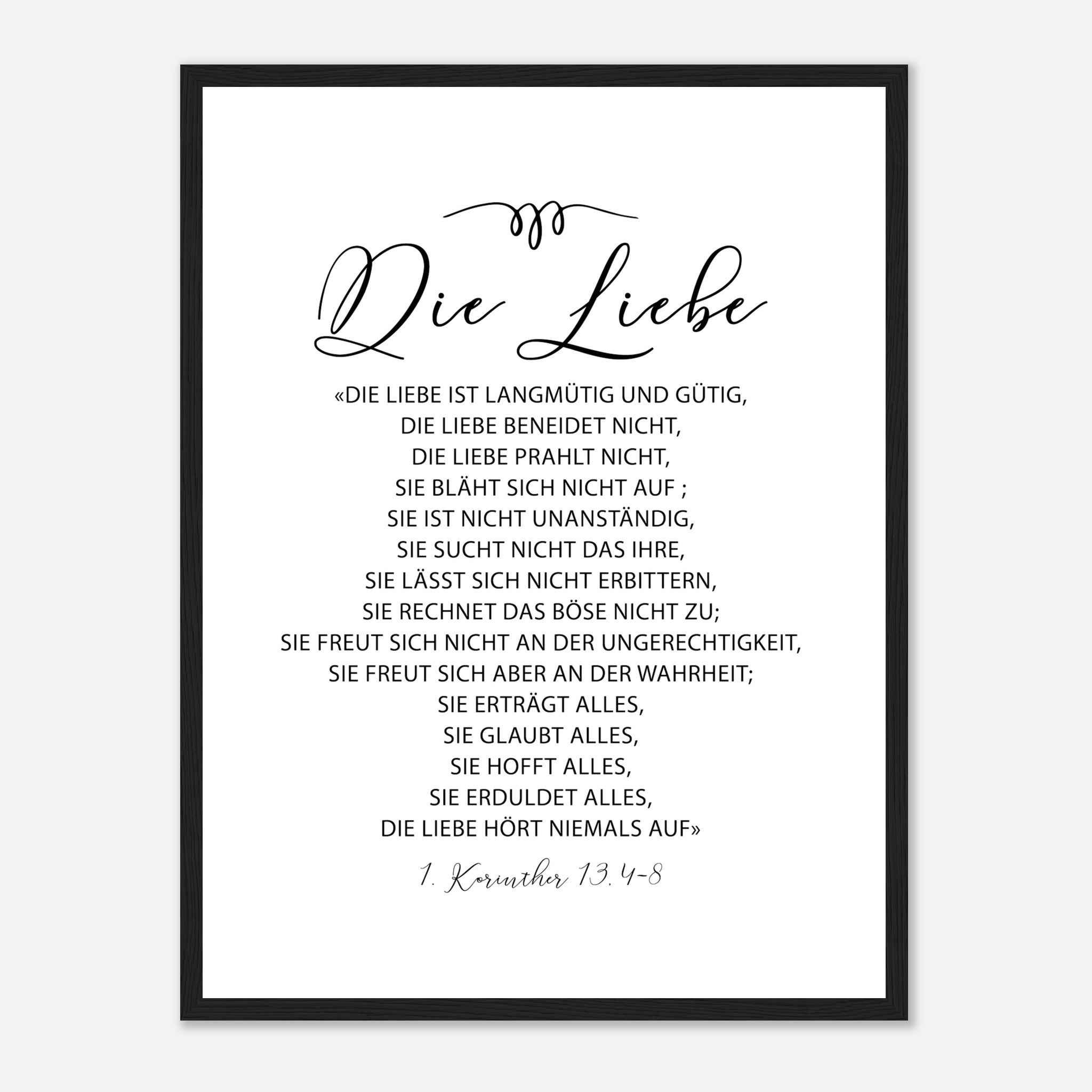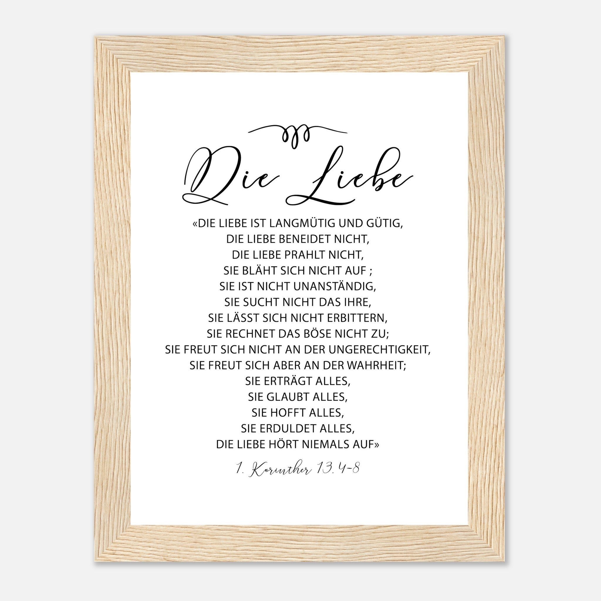 die liebe 1 korinther 13.4-8 Poster mit Holzrahmen