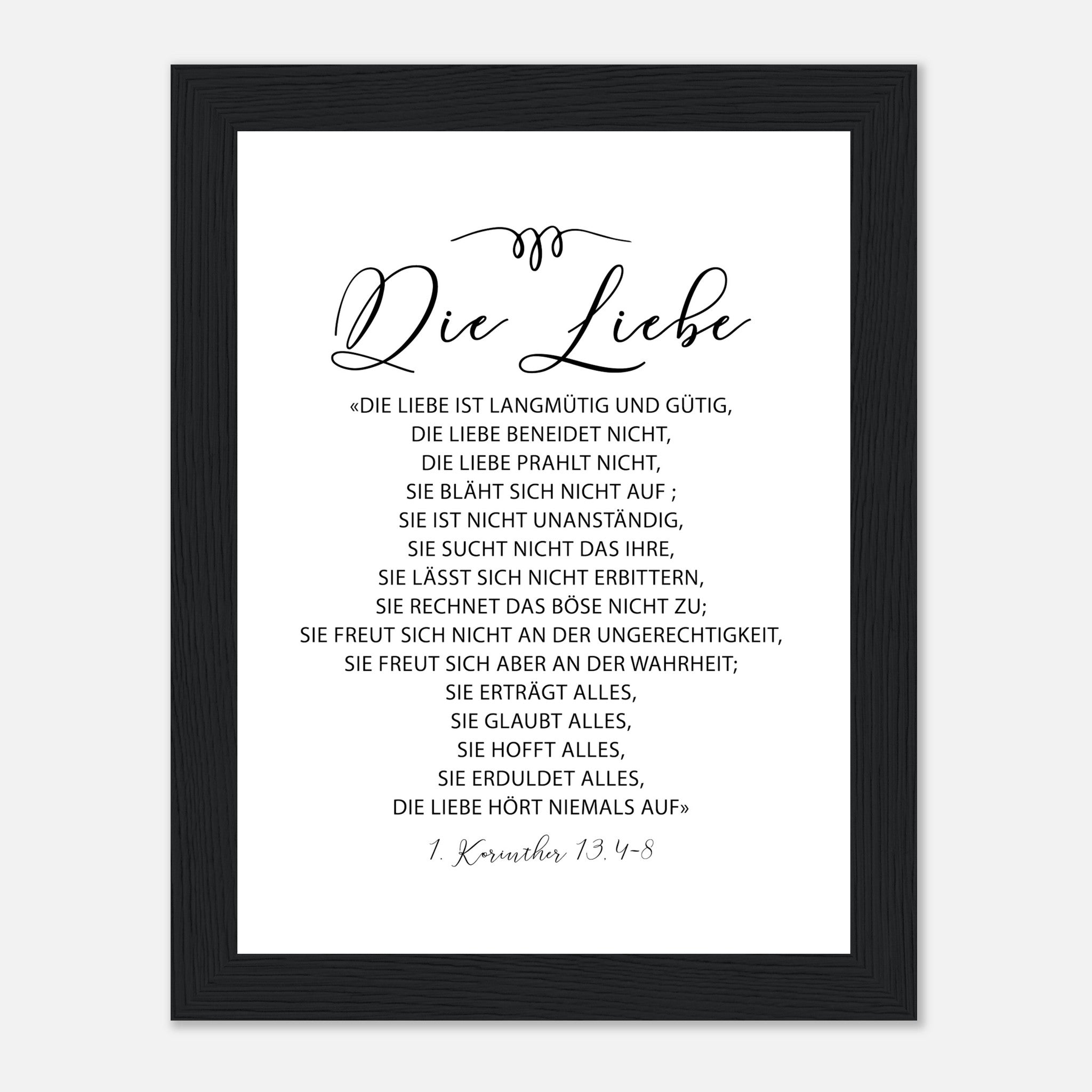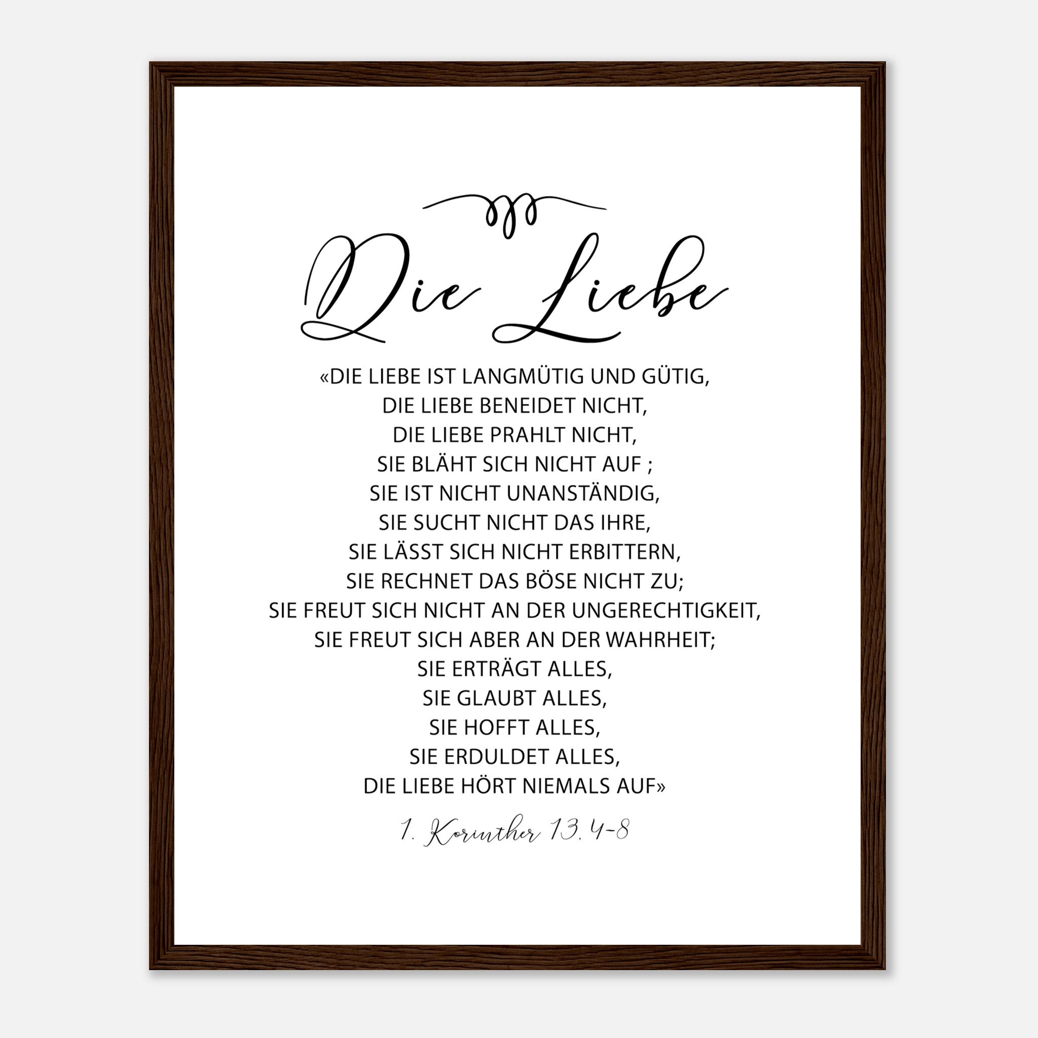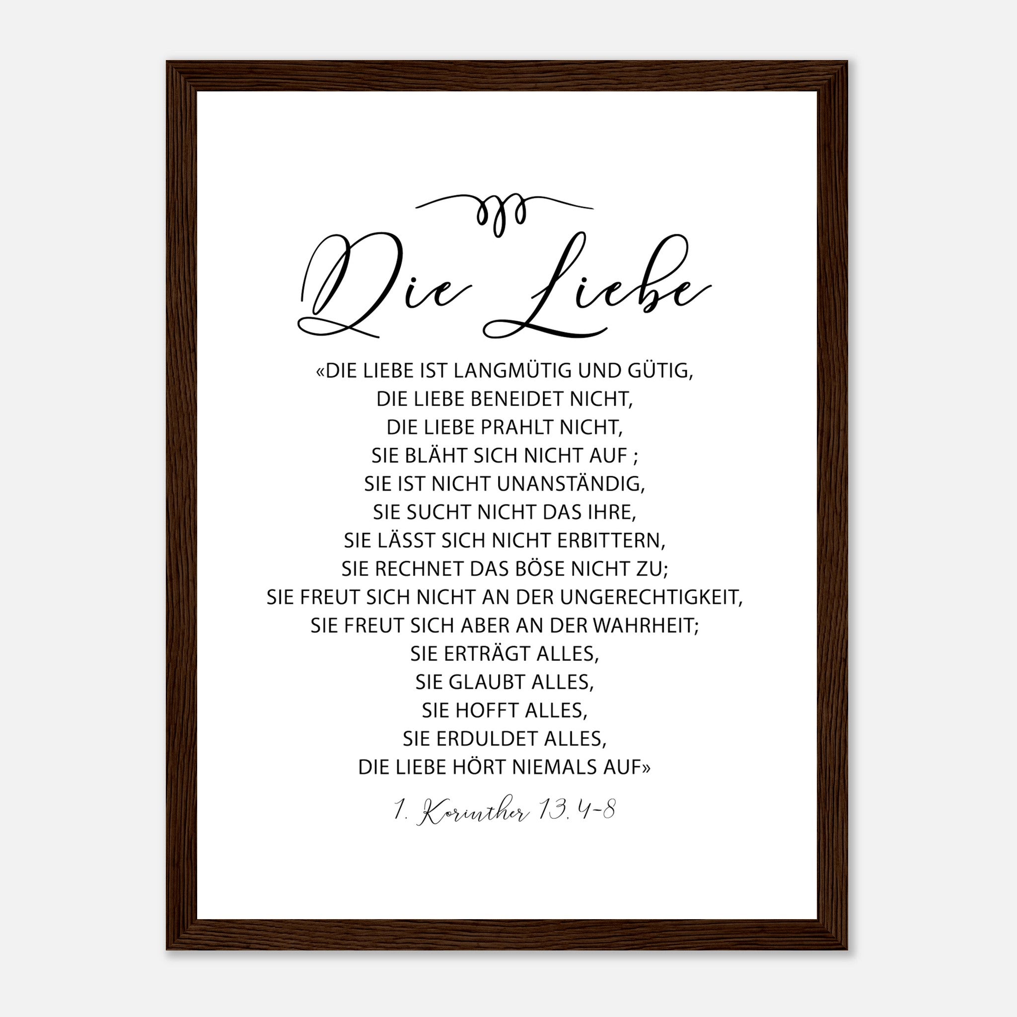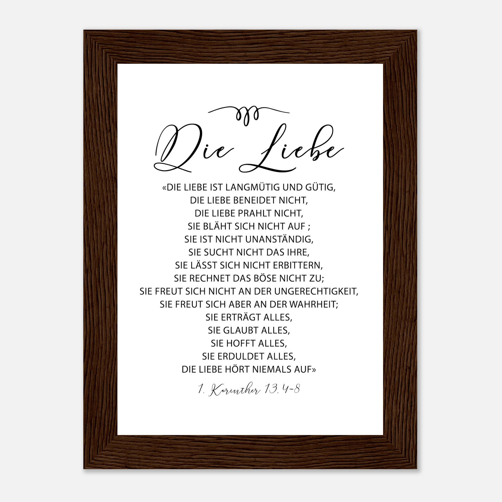 die liebe 1 korinther 13.4-8 Poster mit Holzrahmen