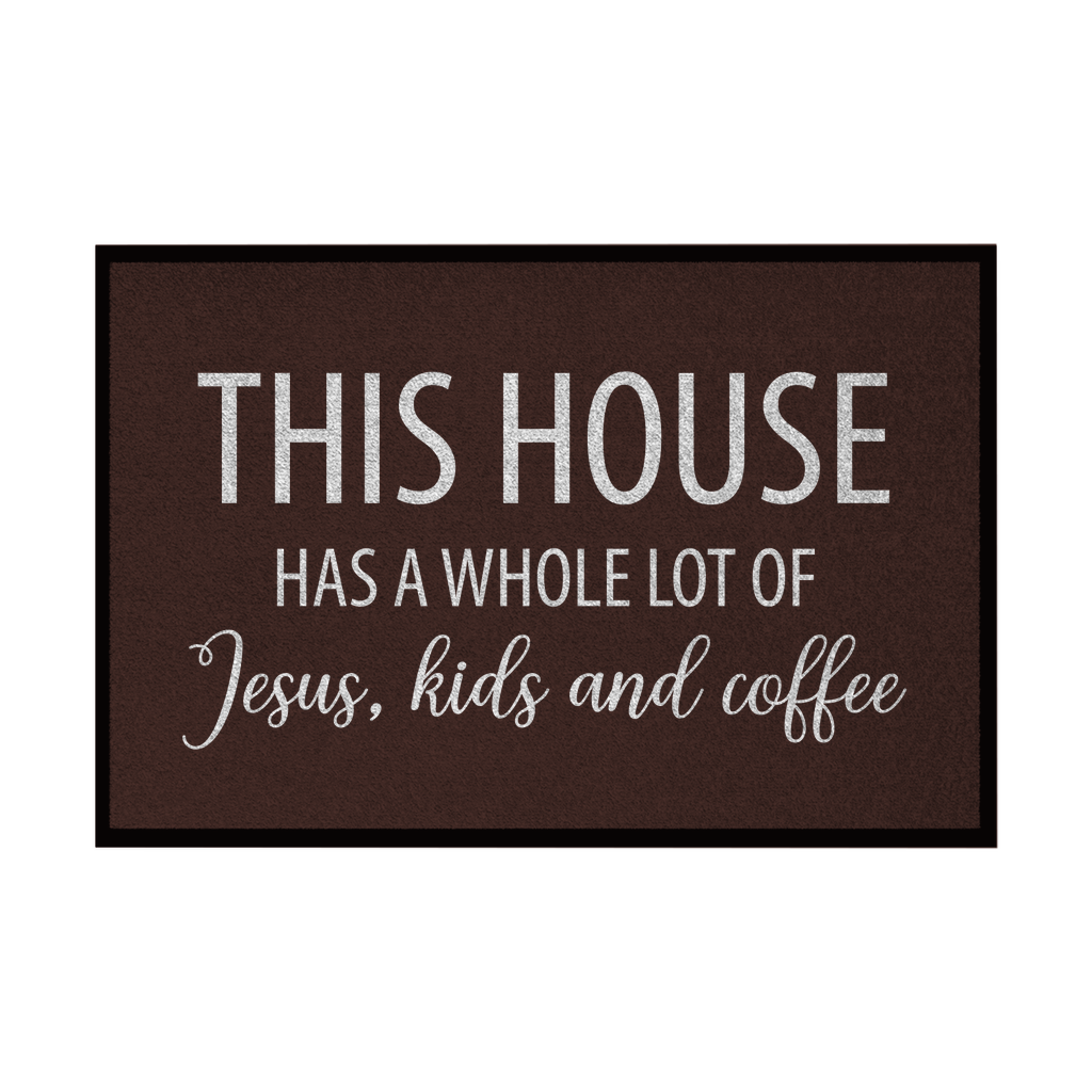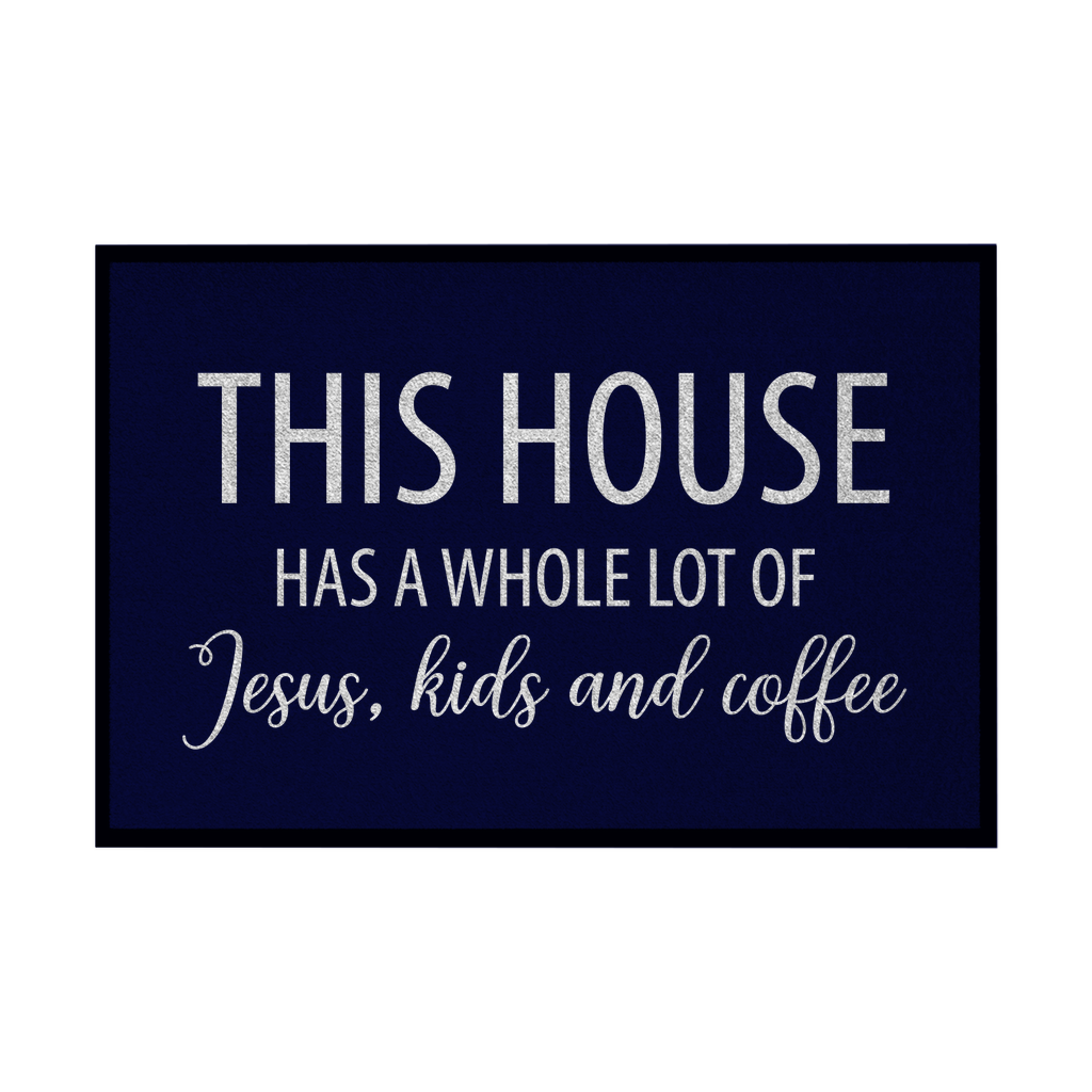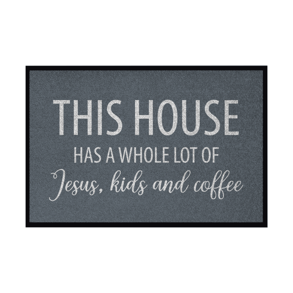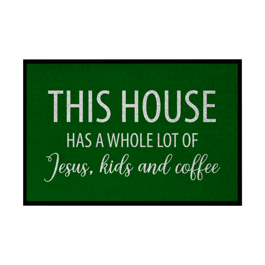 Fußmatte mit Gummirand this house has a whole lot of jesus kids and coffee