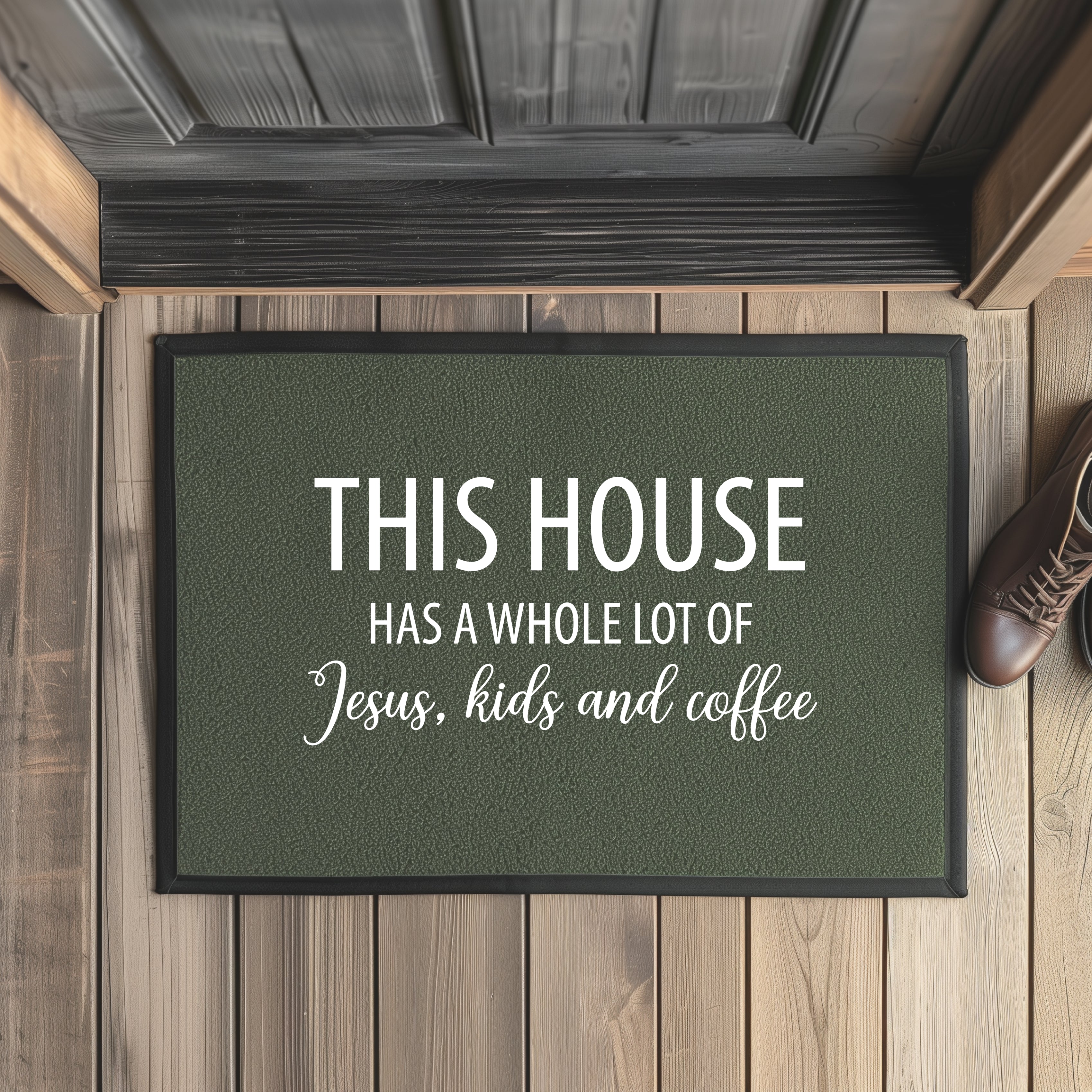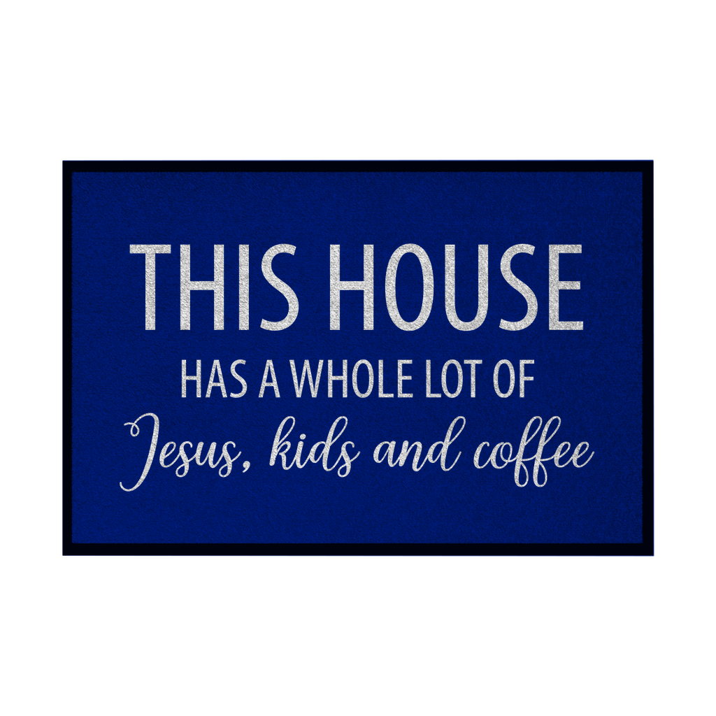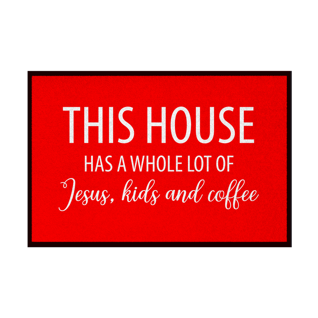 Fußmatte mit Gummirand this house has a whole lot of jesus kids and coffee