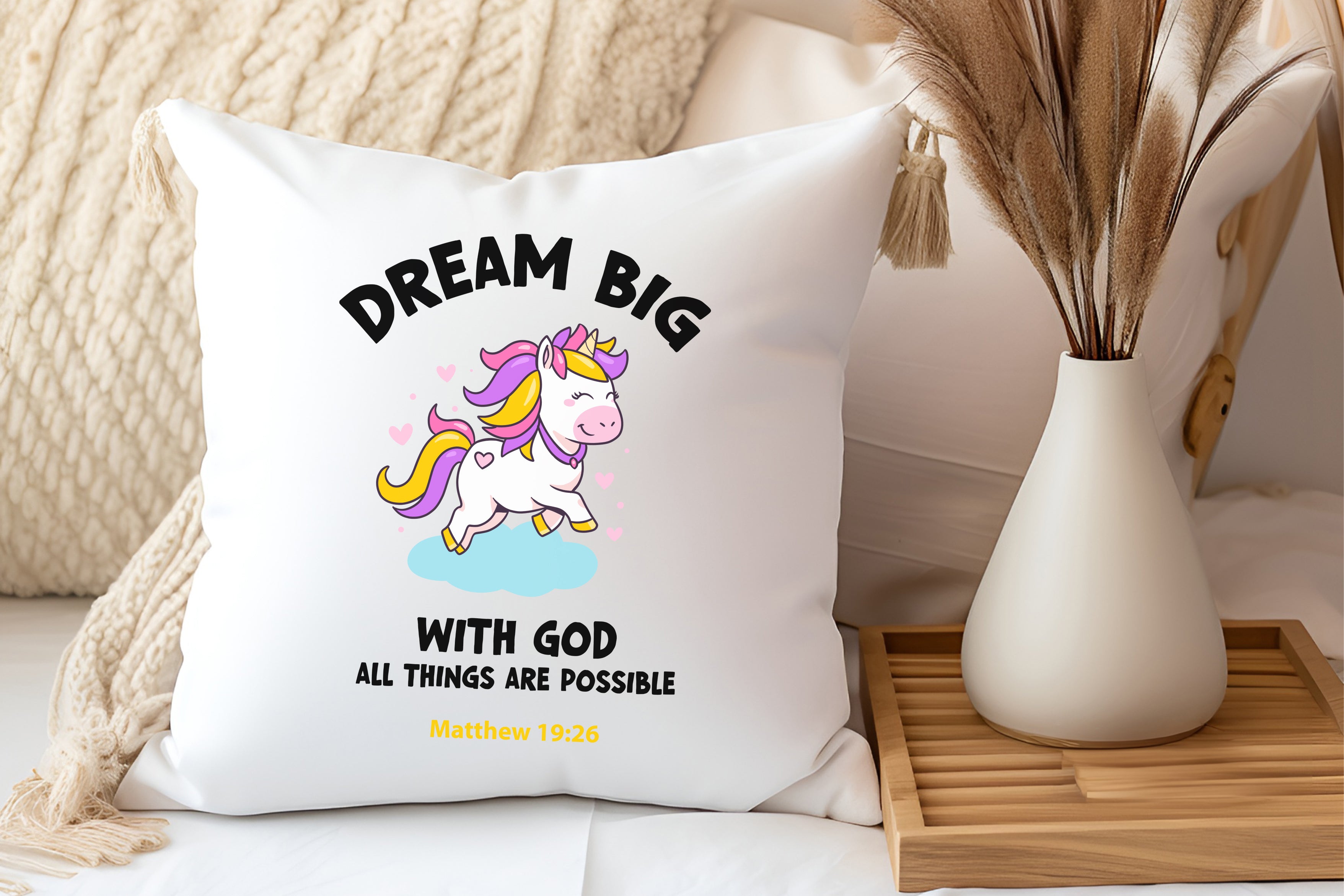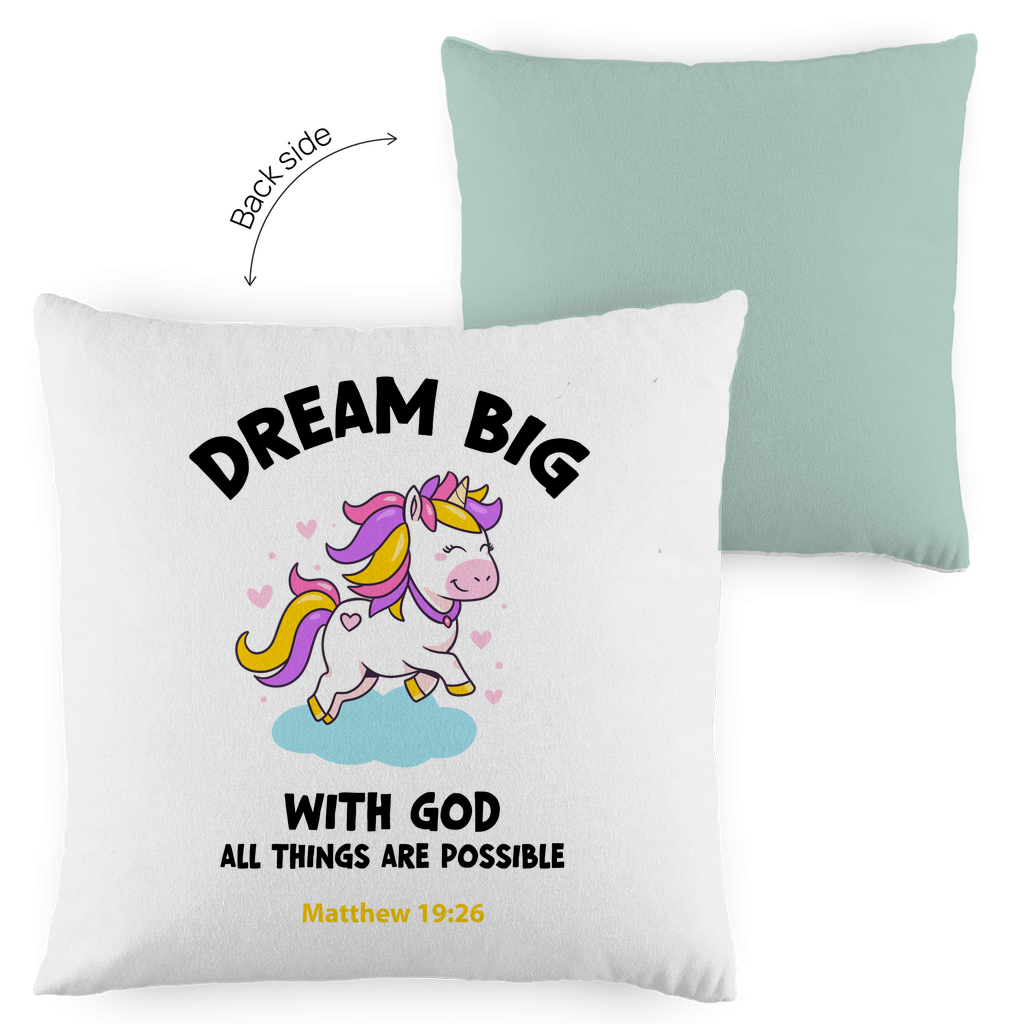 Kopfkissen zweifarbig einhorn all things are possible matthew 19:26