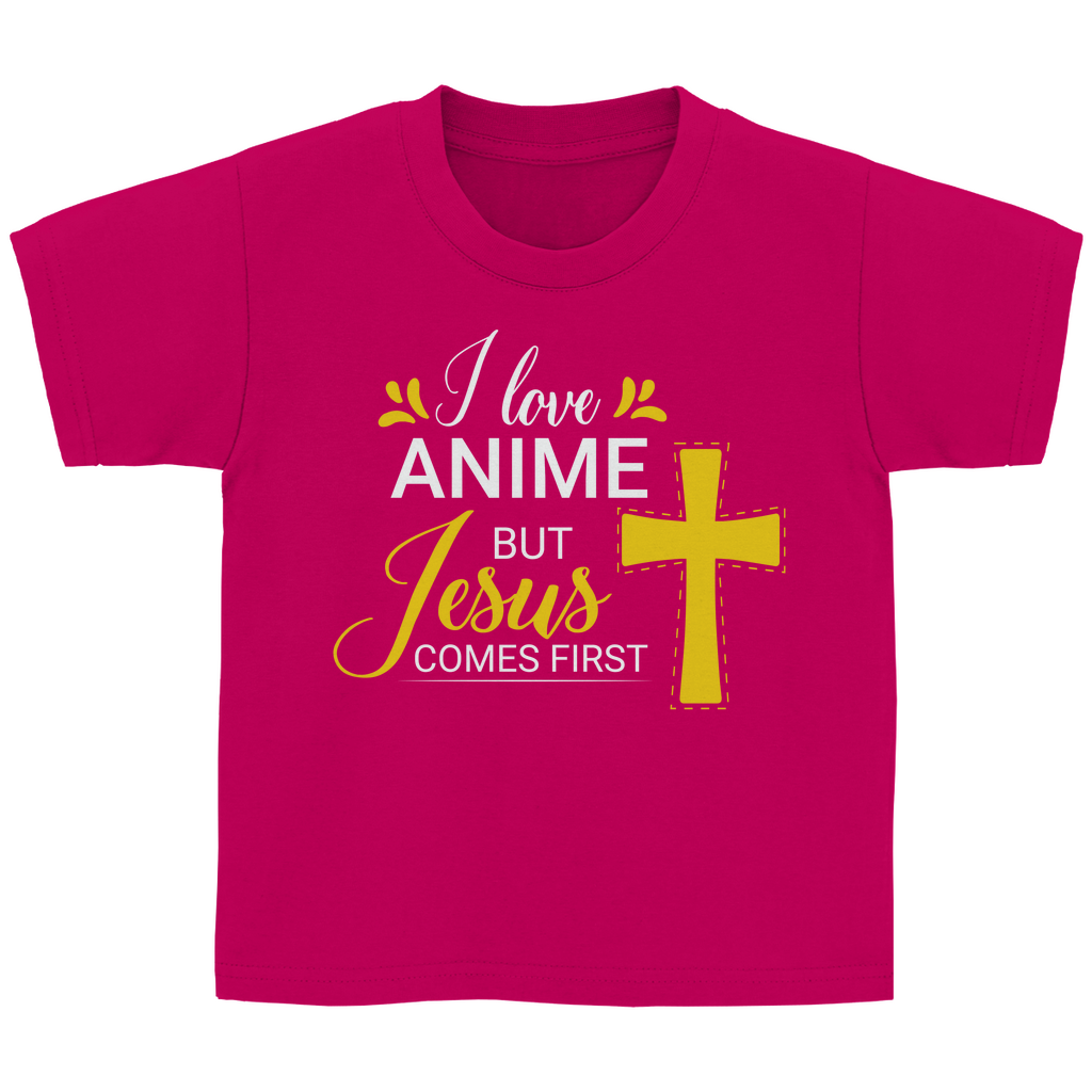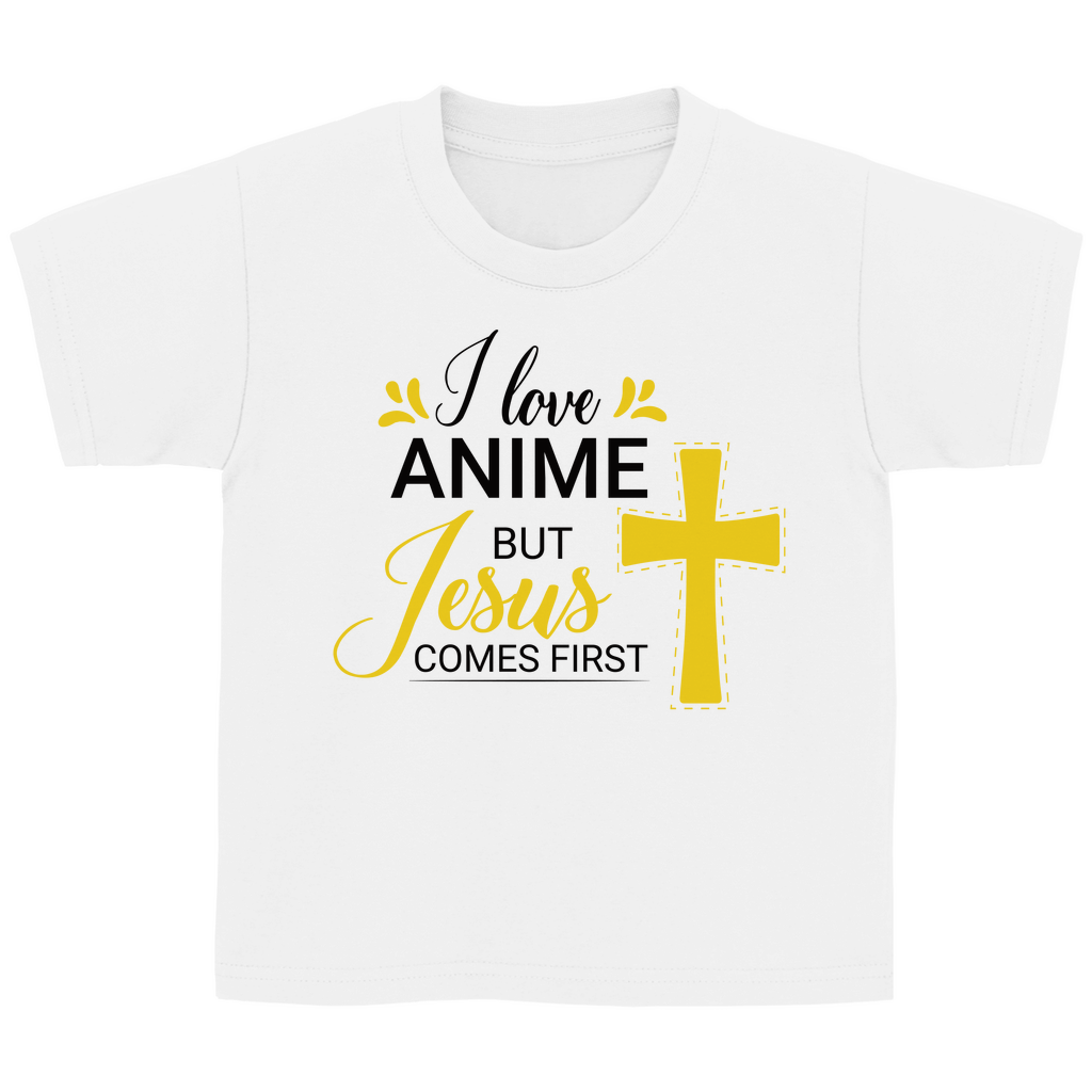 Kinder T-Shirt i love anime but jesus comes first