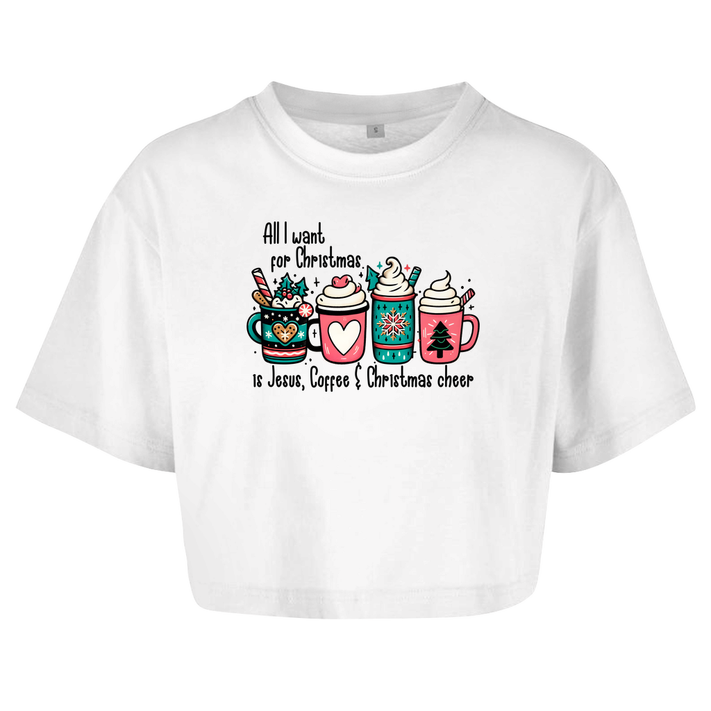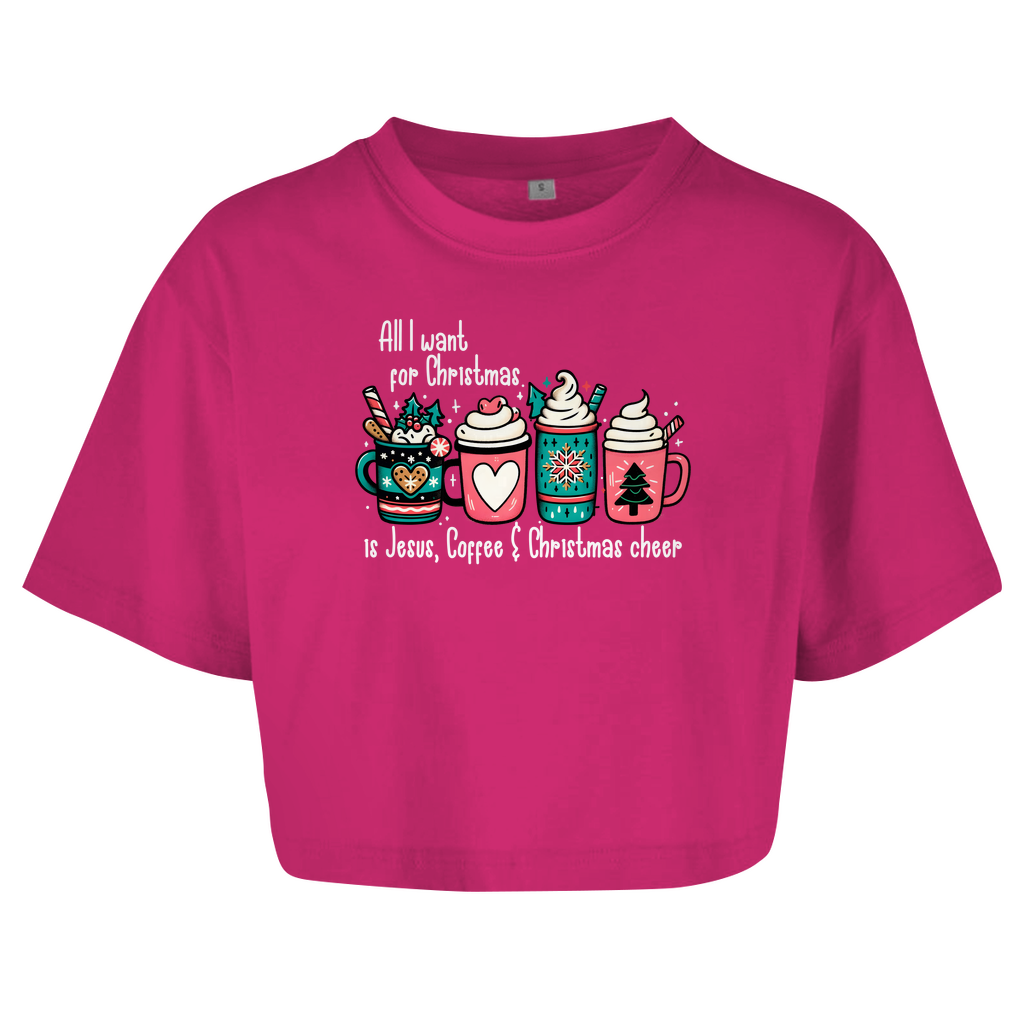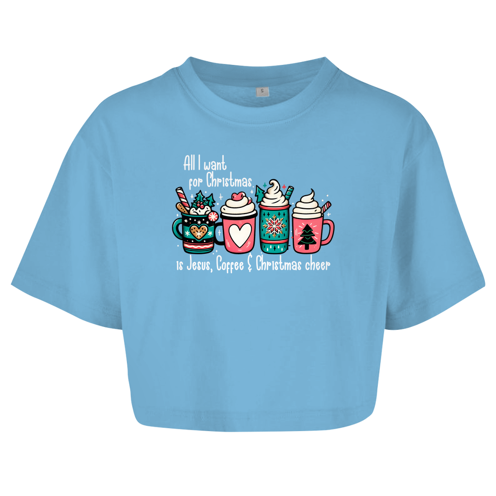Damen Oversize Crop Top all i want for christmas is jesus coffee