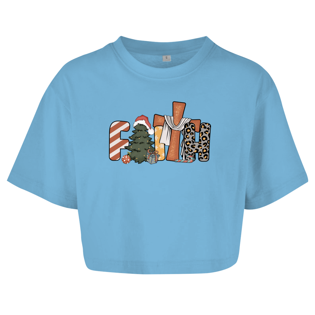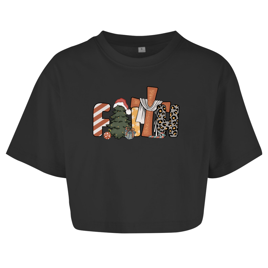 Damen Oversize Crop Top faith weihnachtsmotiv