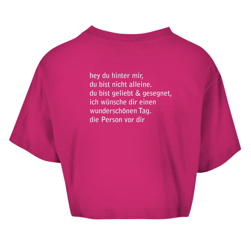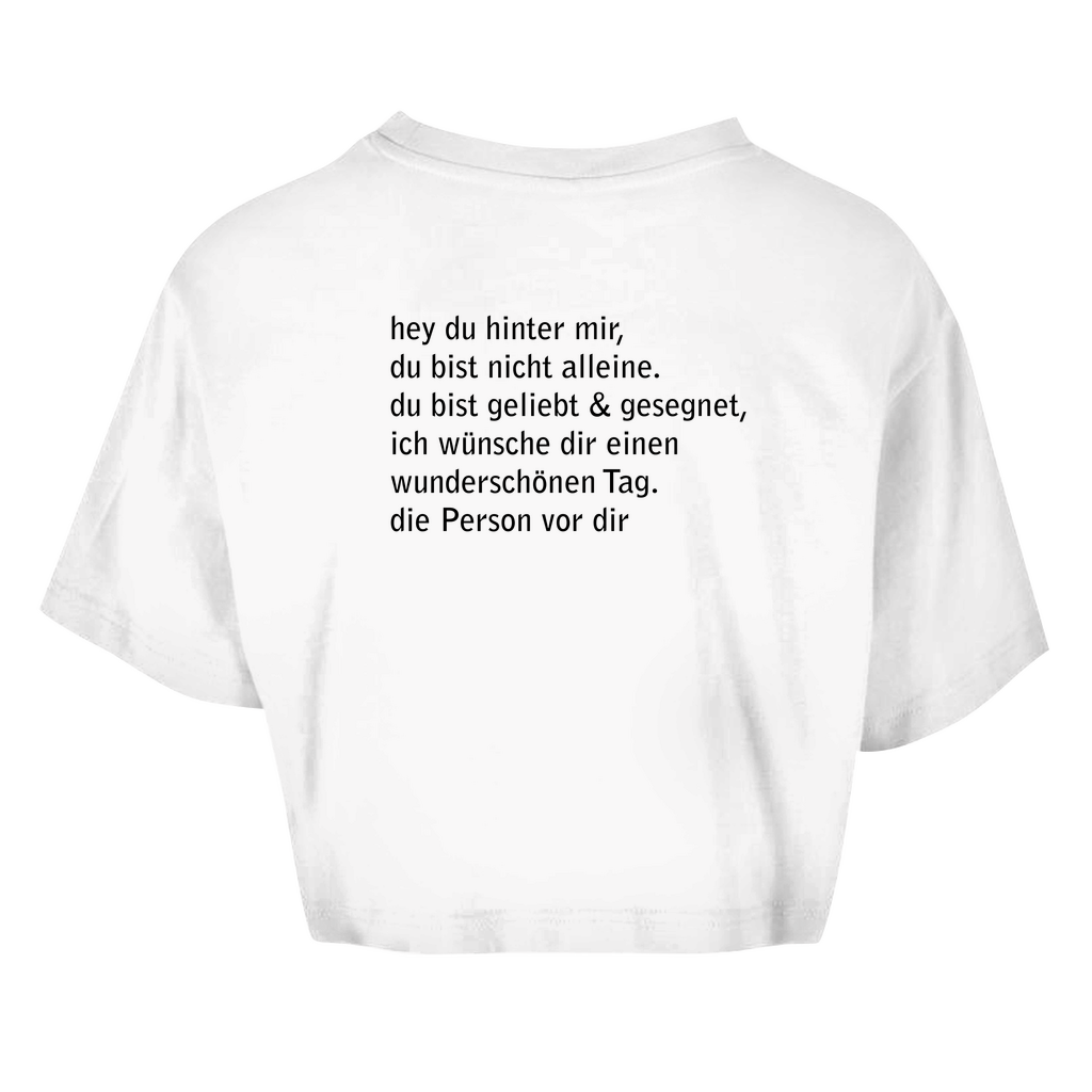 Damen Oversize Crop Top hey du hinter mir