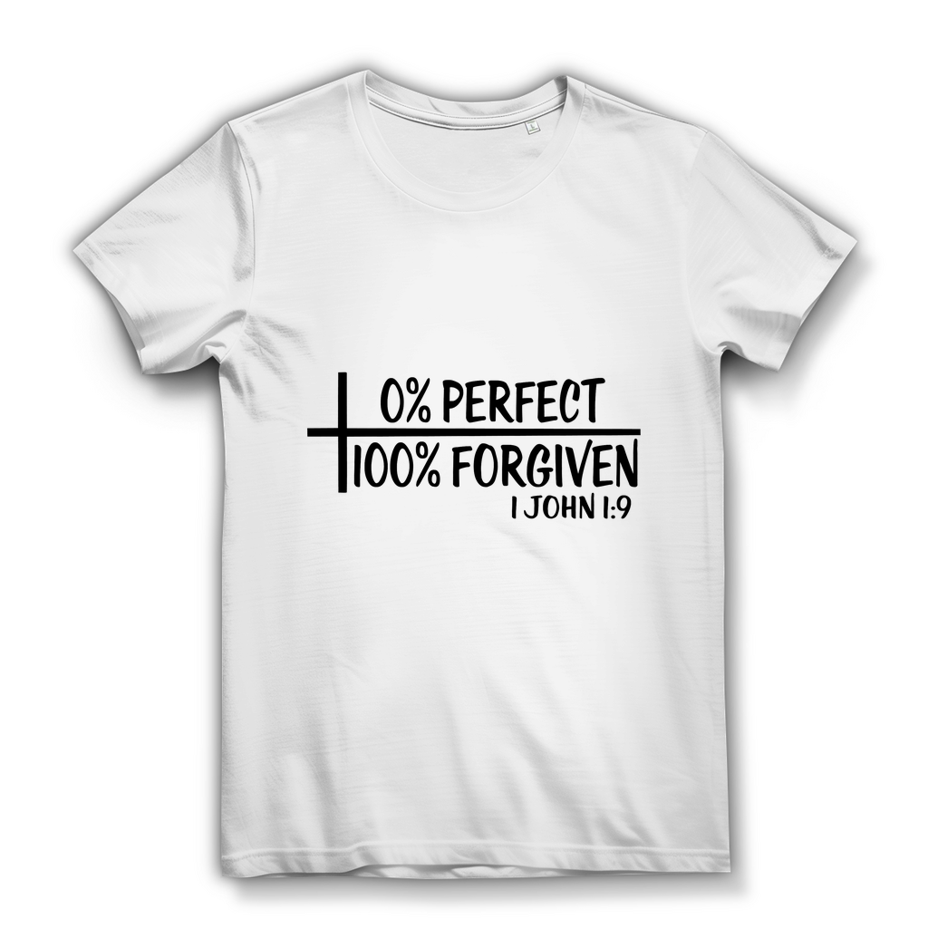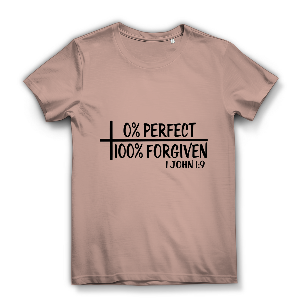Damen Bio T-Shirt 0% perfect 100% forgiven 1 john 1:9