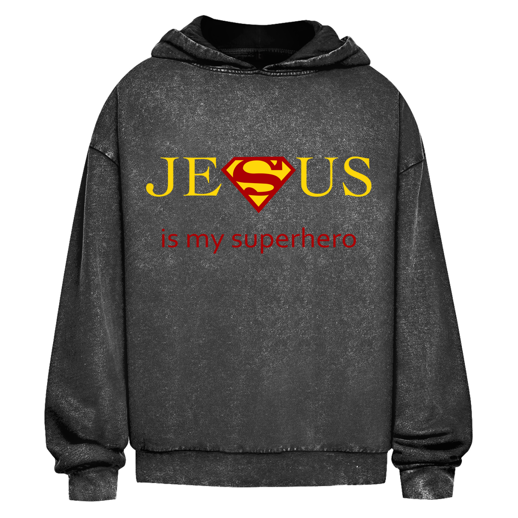 Oversize Washed Hoodie jesus is my superhero