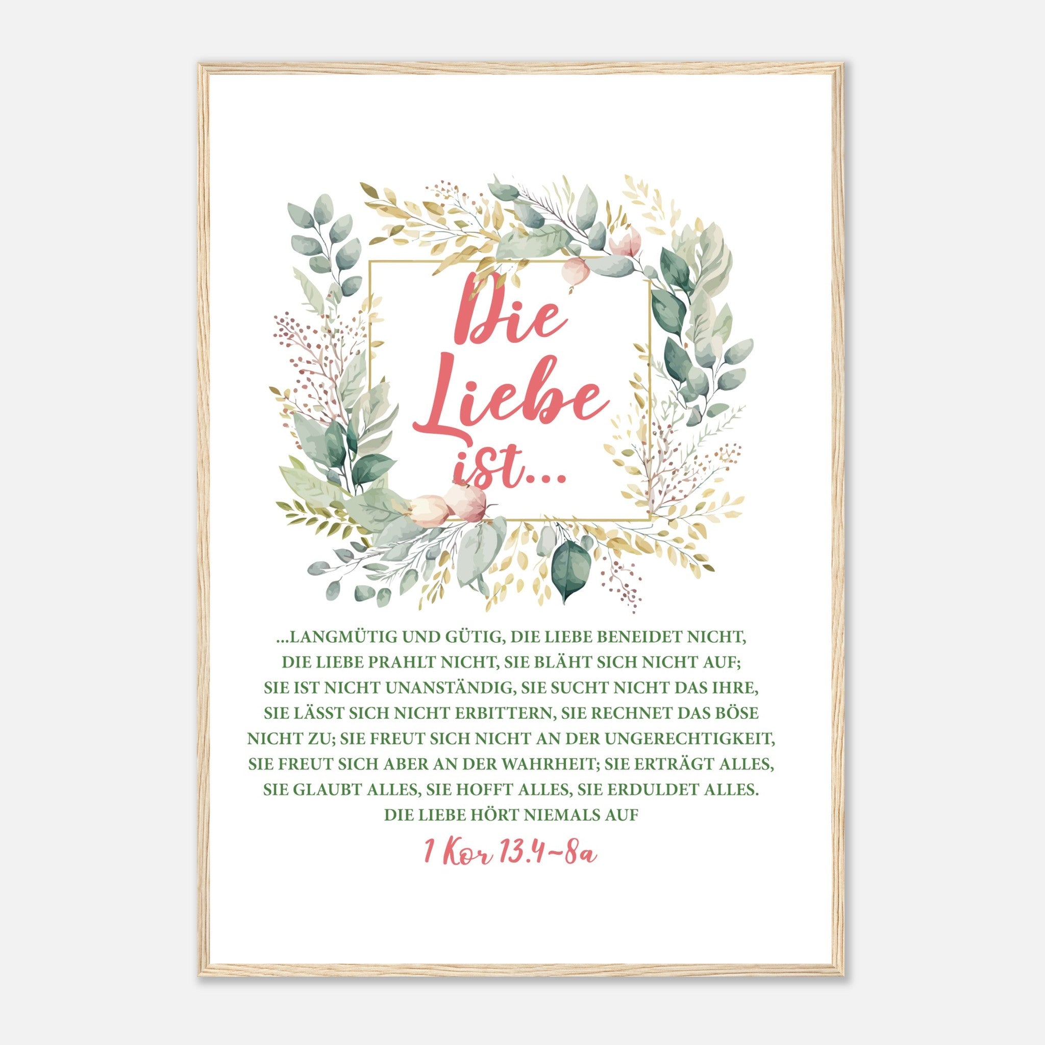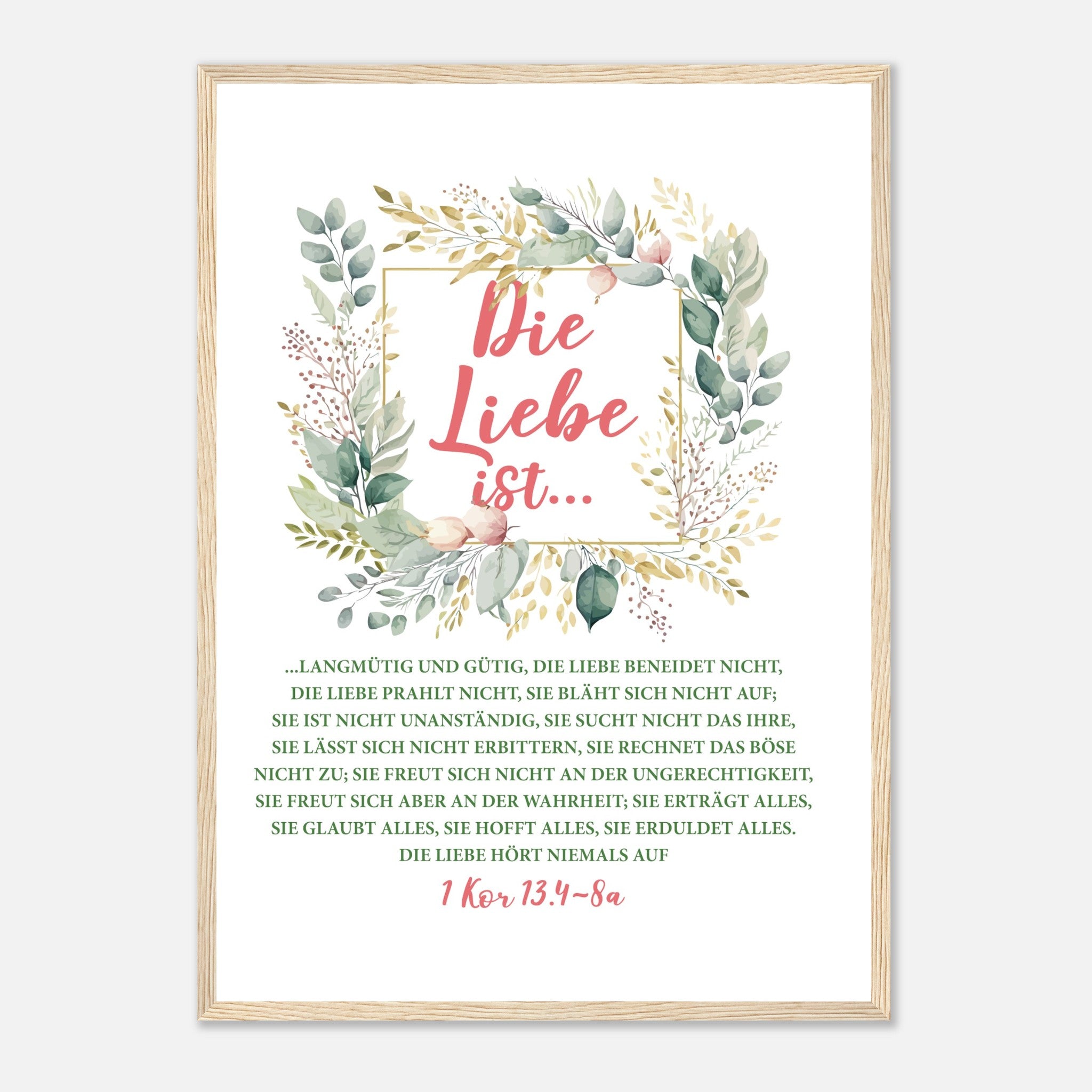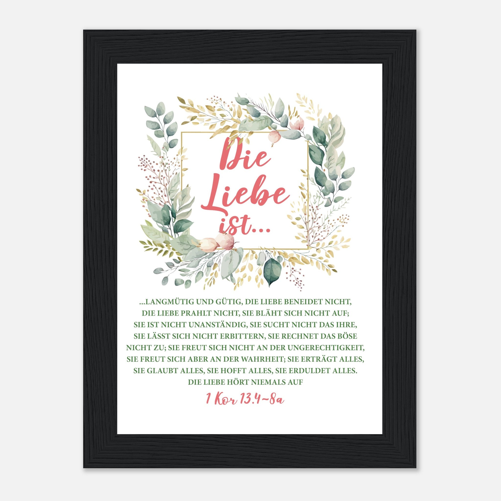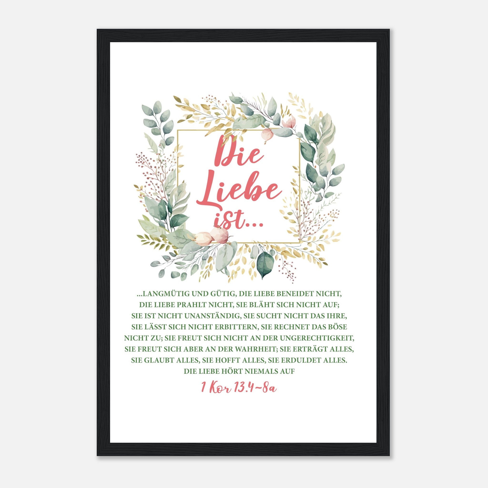 Die Liebe Ist 1 Kor 13.4-8a Poster mit Holzrahmen