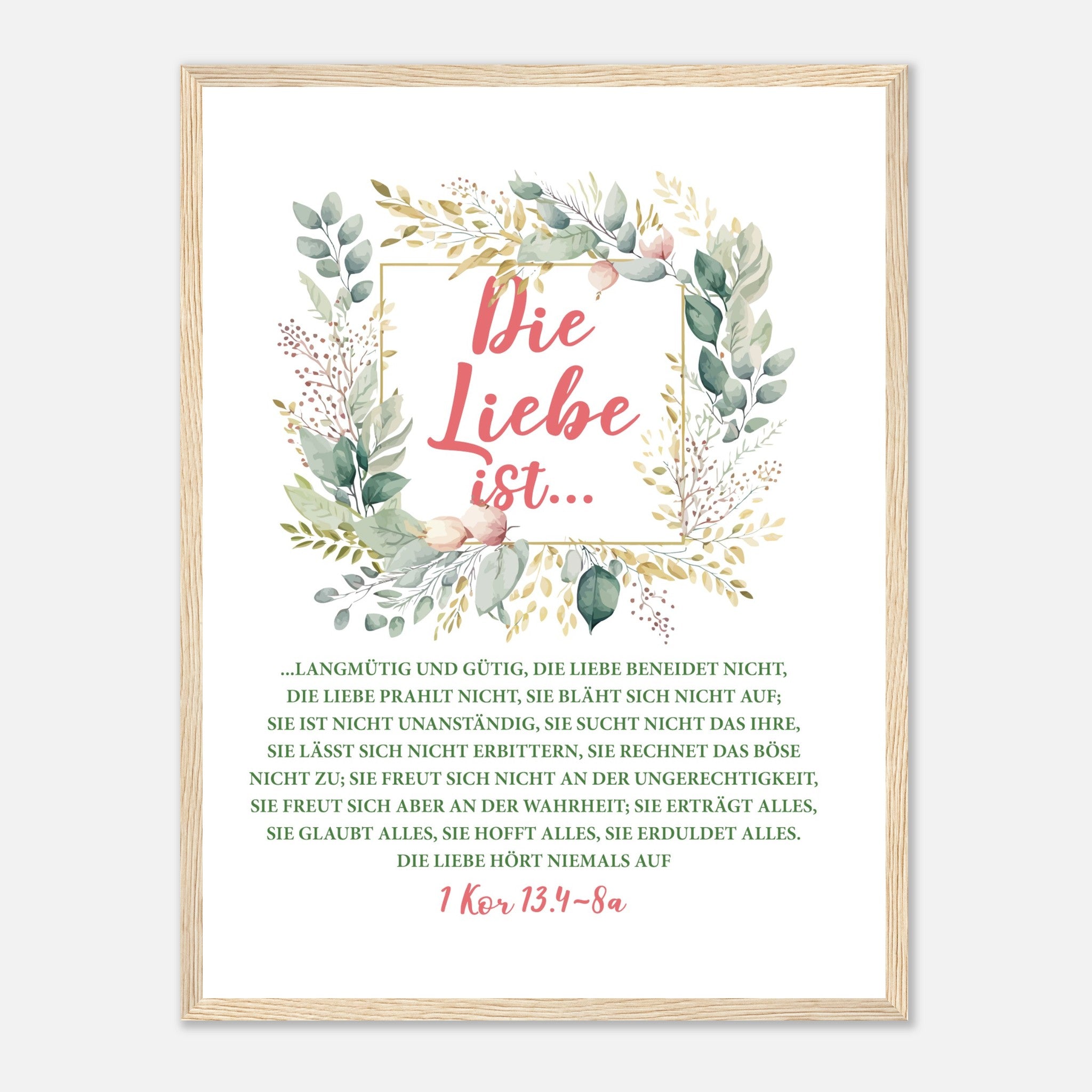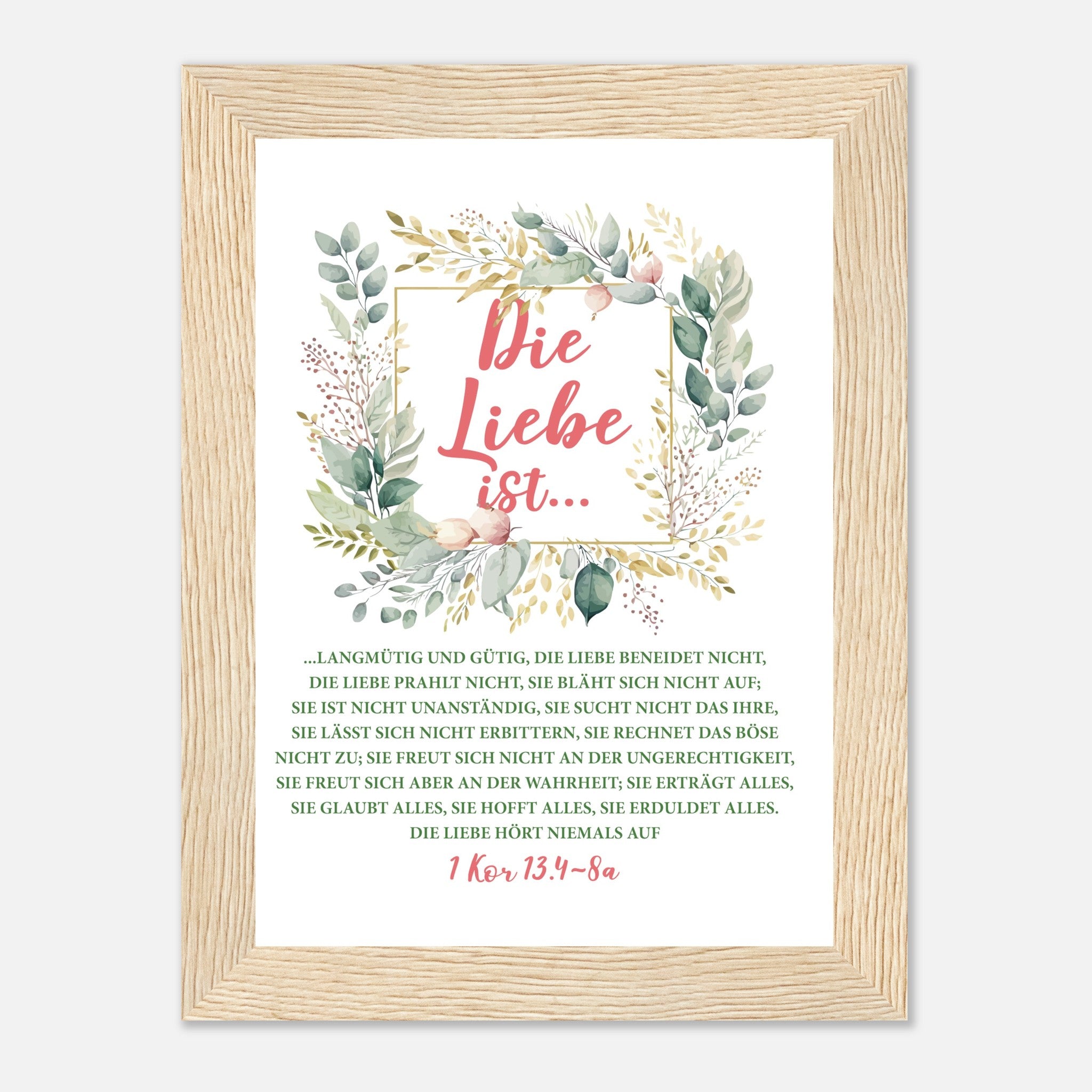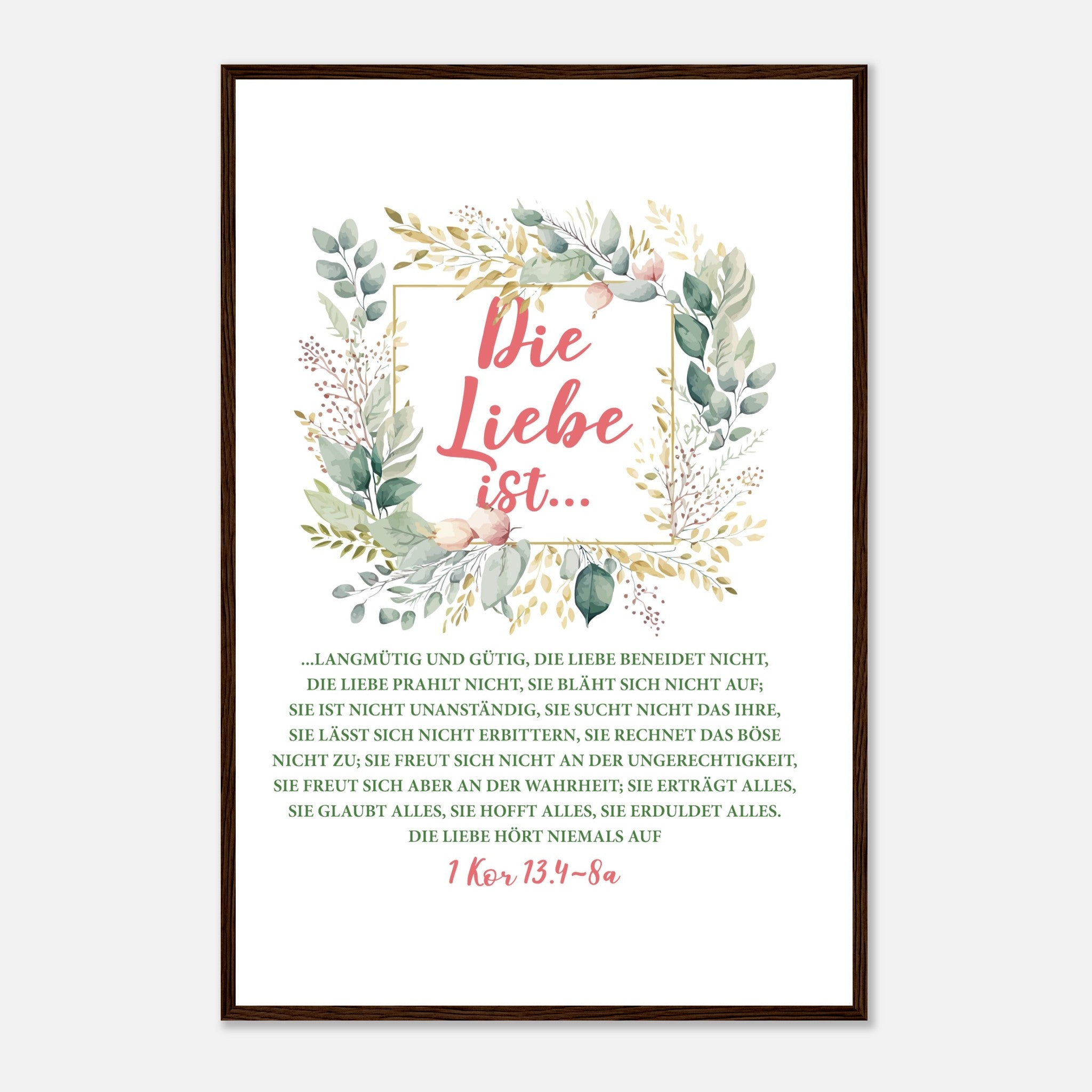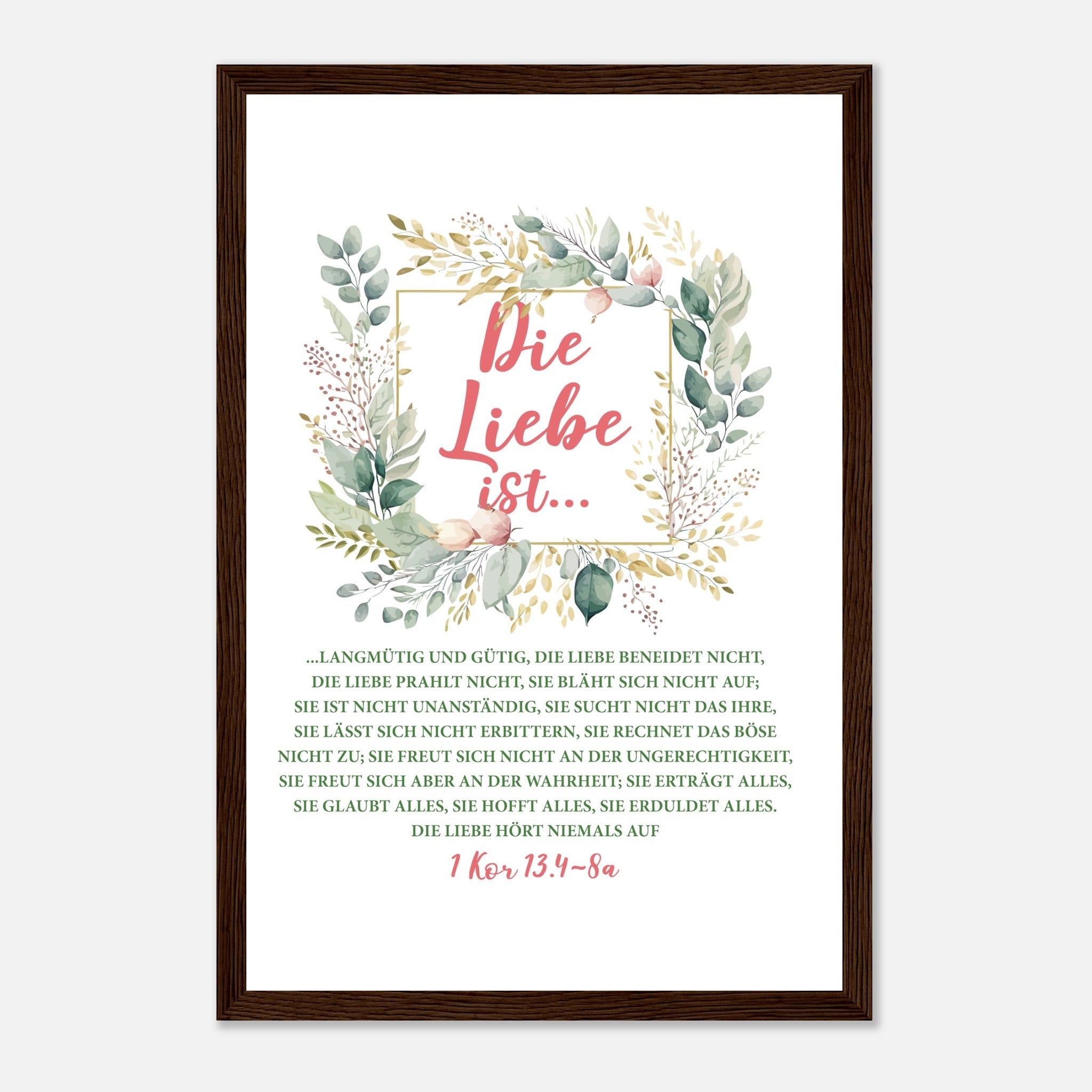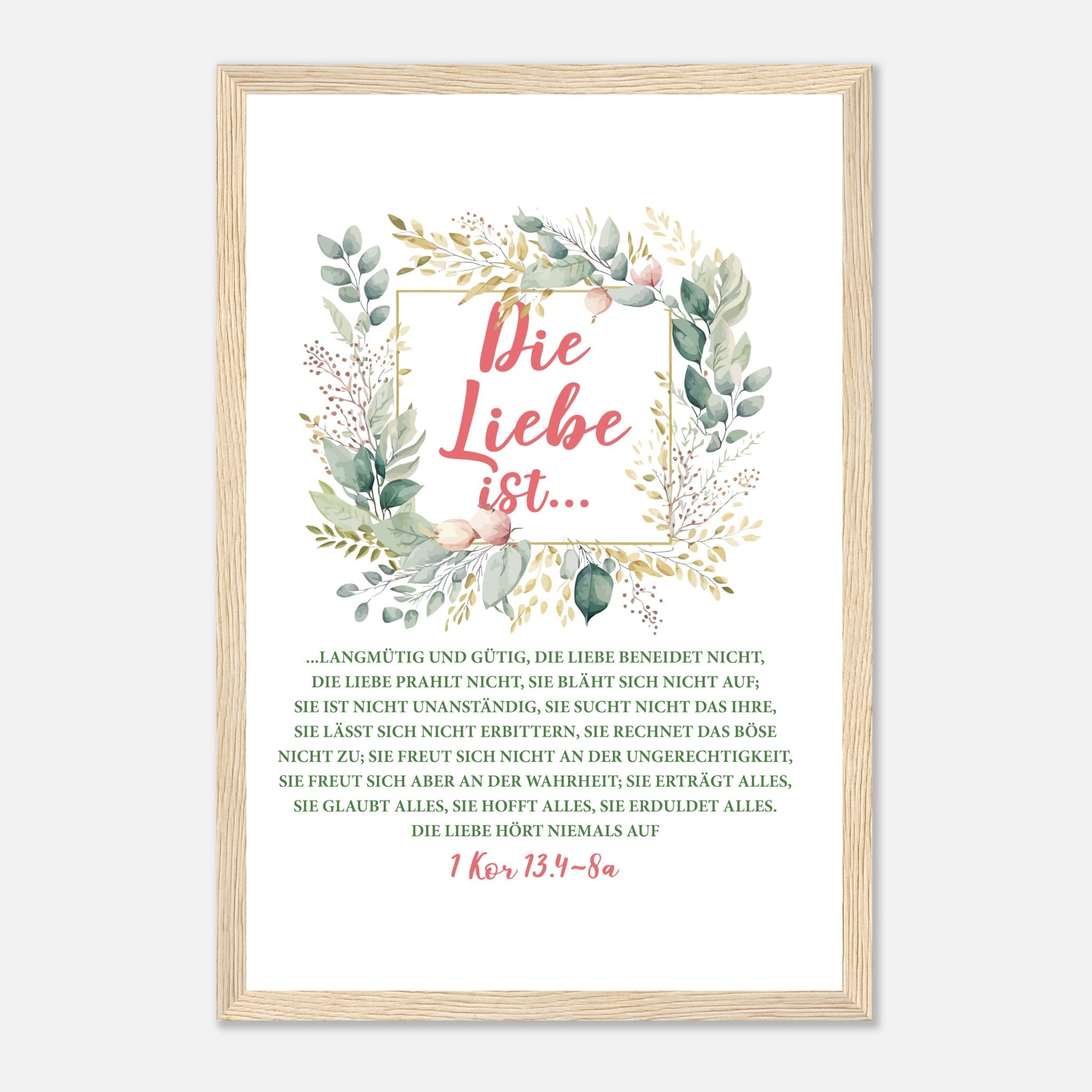 Die Liebe Ist 1 Kor 13.4-8a Poster mit Holzrahmen