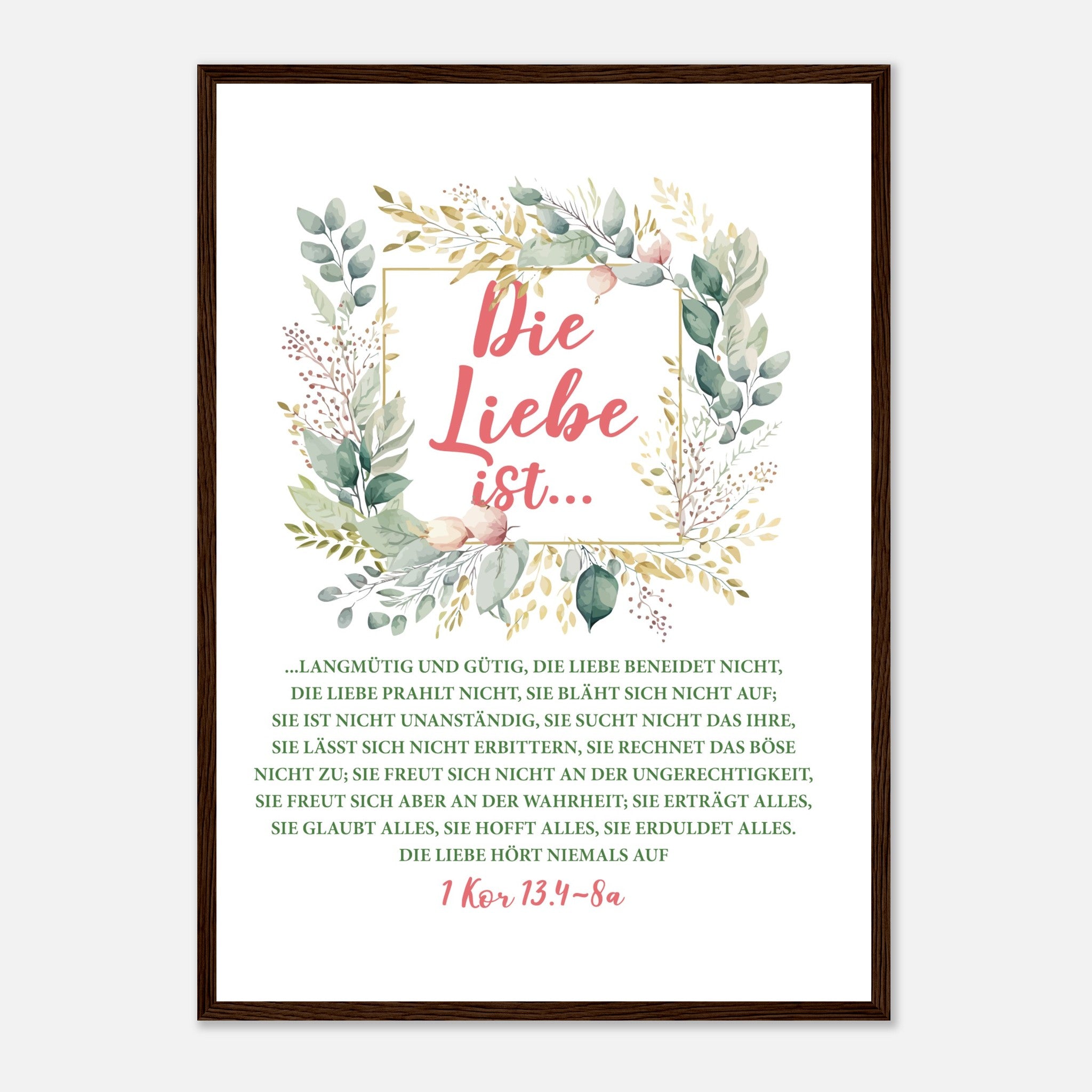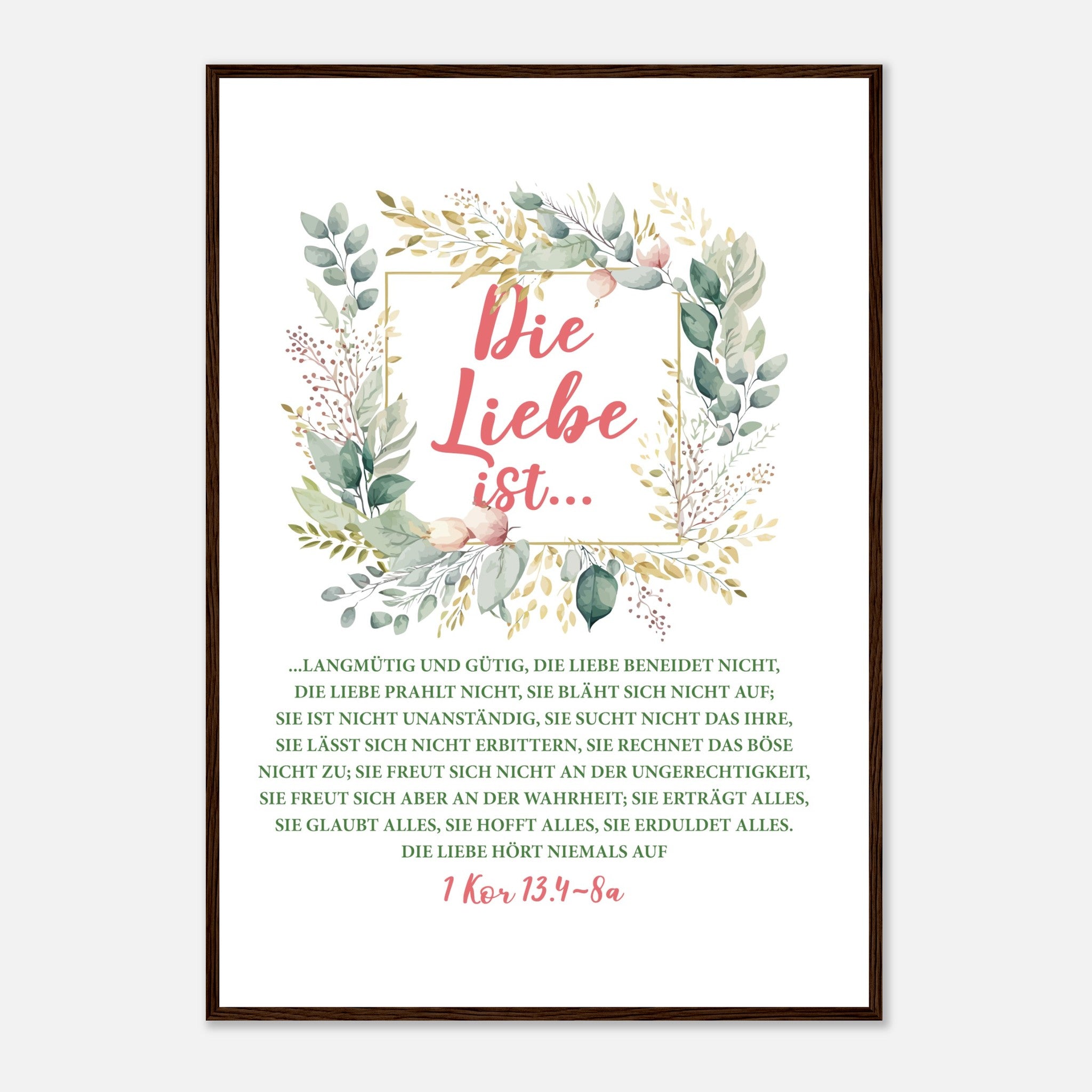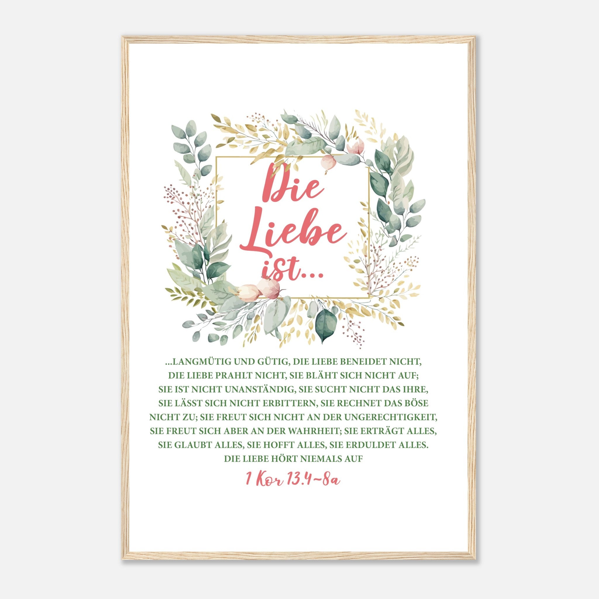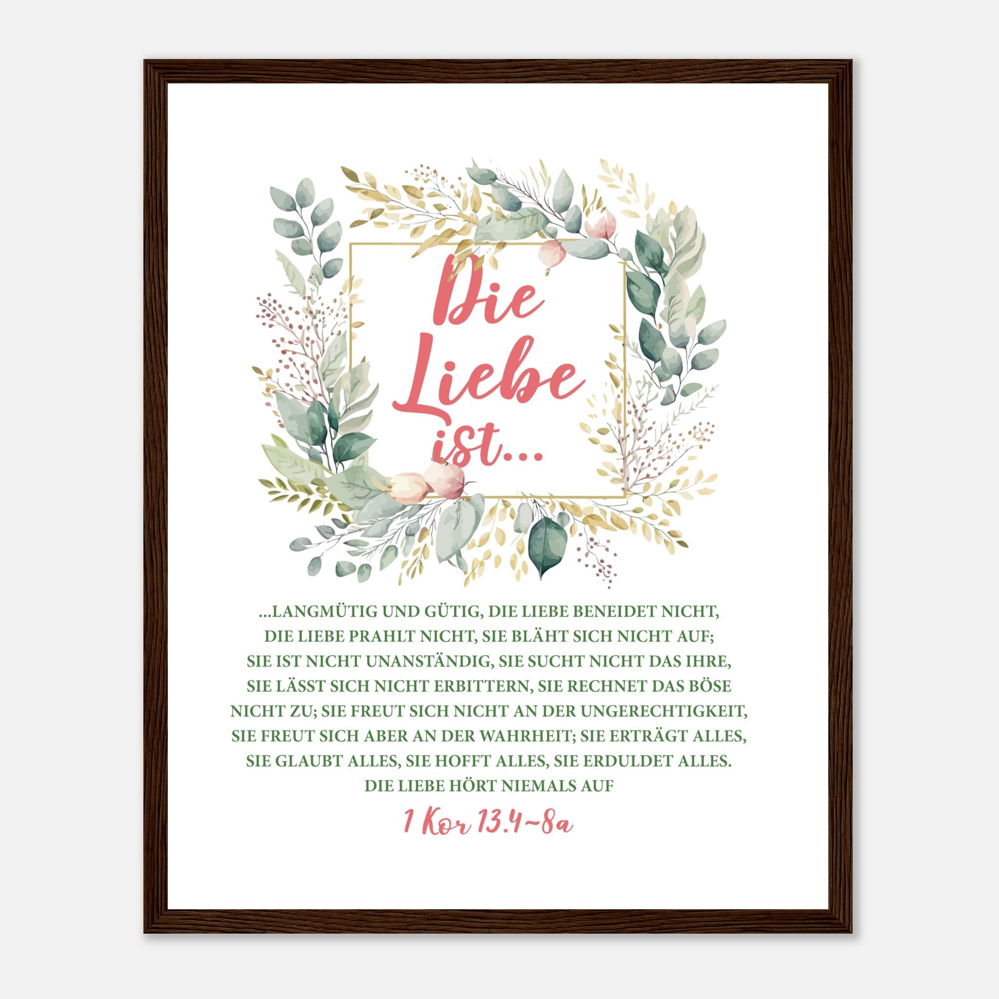 Die Liebe Ist 1 Kor 13.4-8a Poster mit Holzrahmen