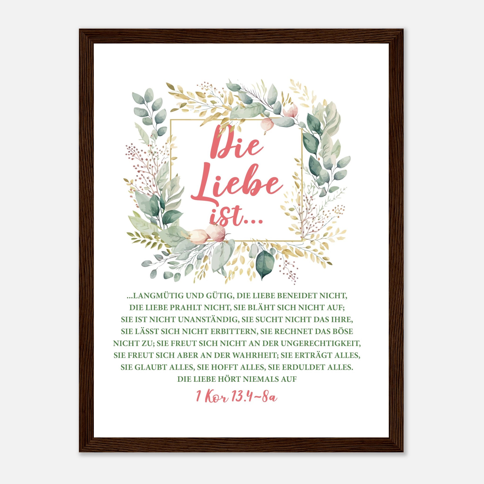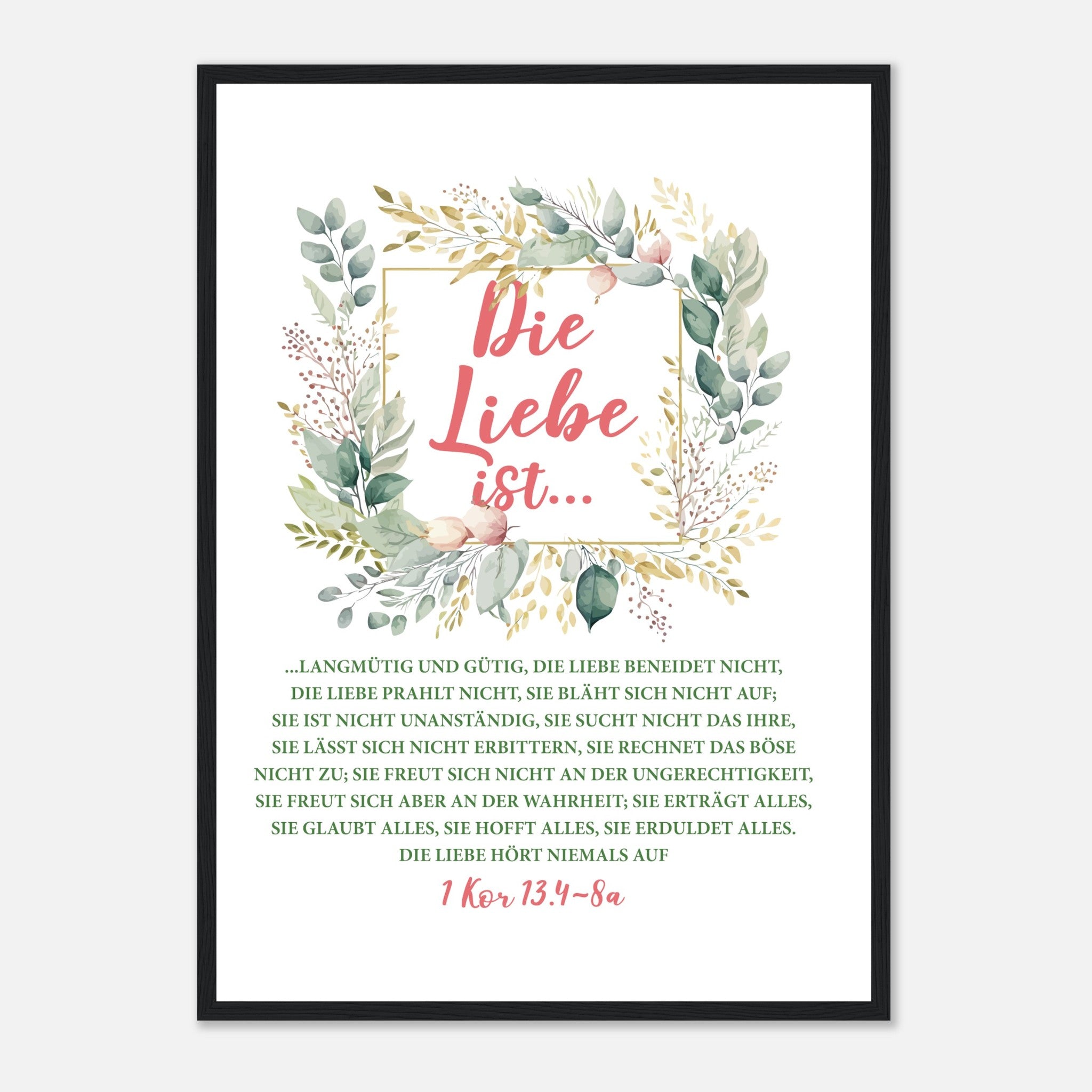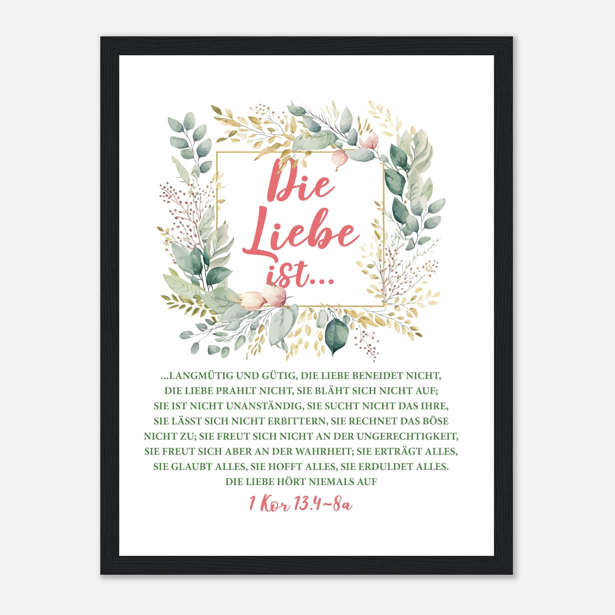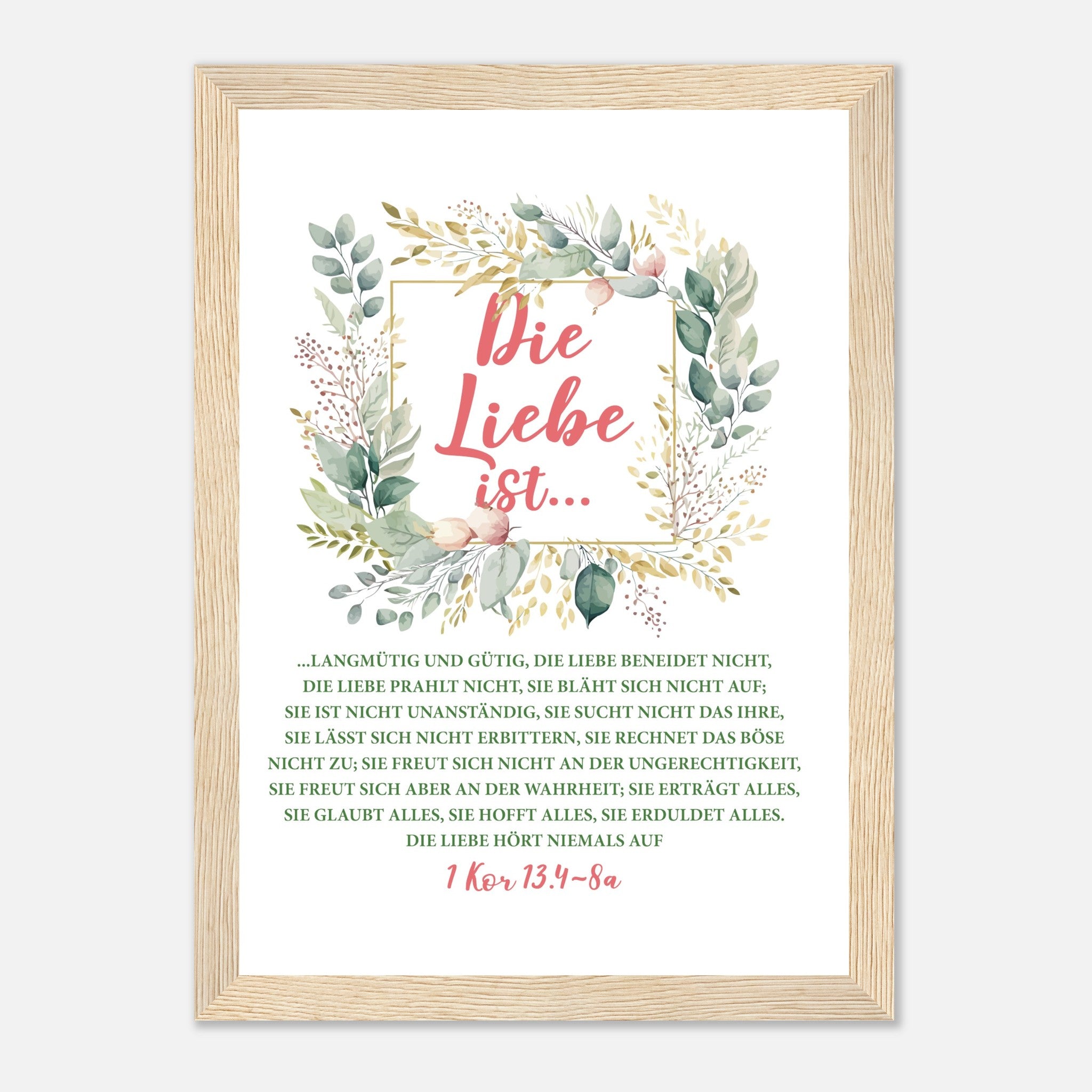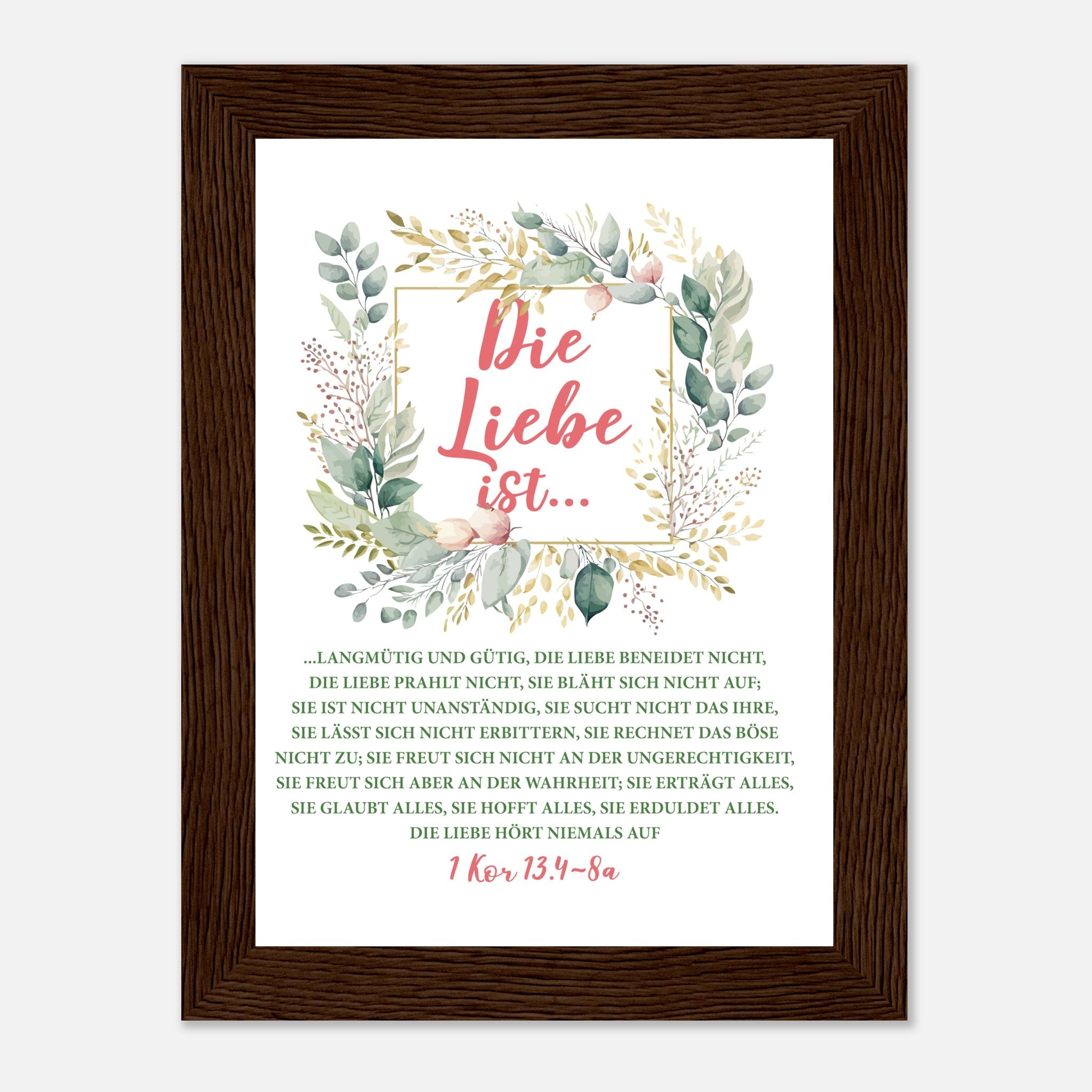 Die Liebe Ist 1 Kor 13.4-8a Poster mit Holzrahmen