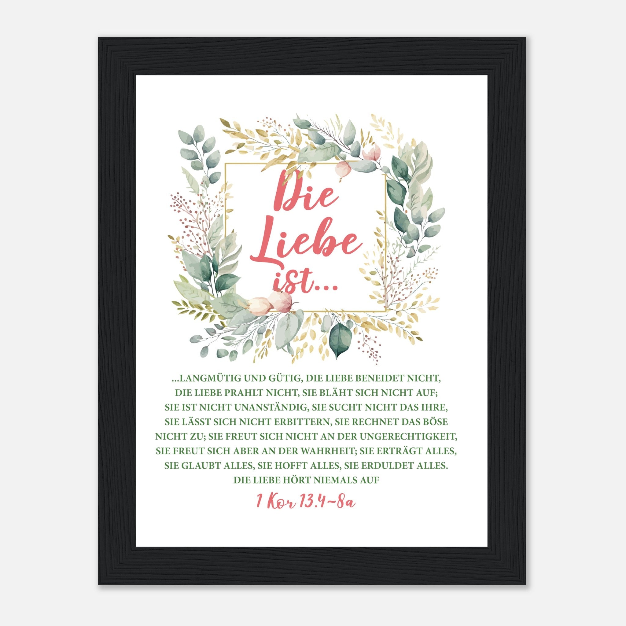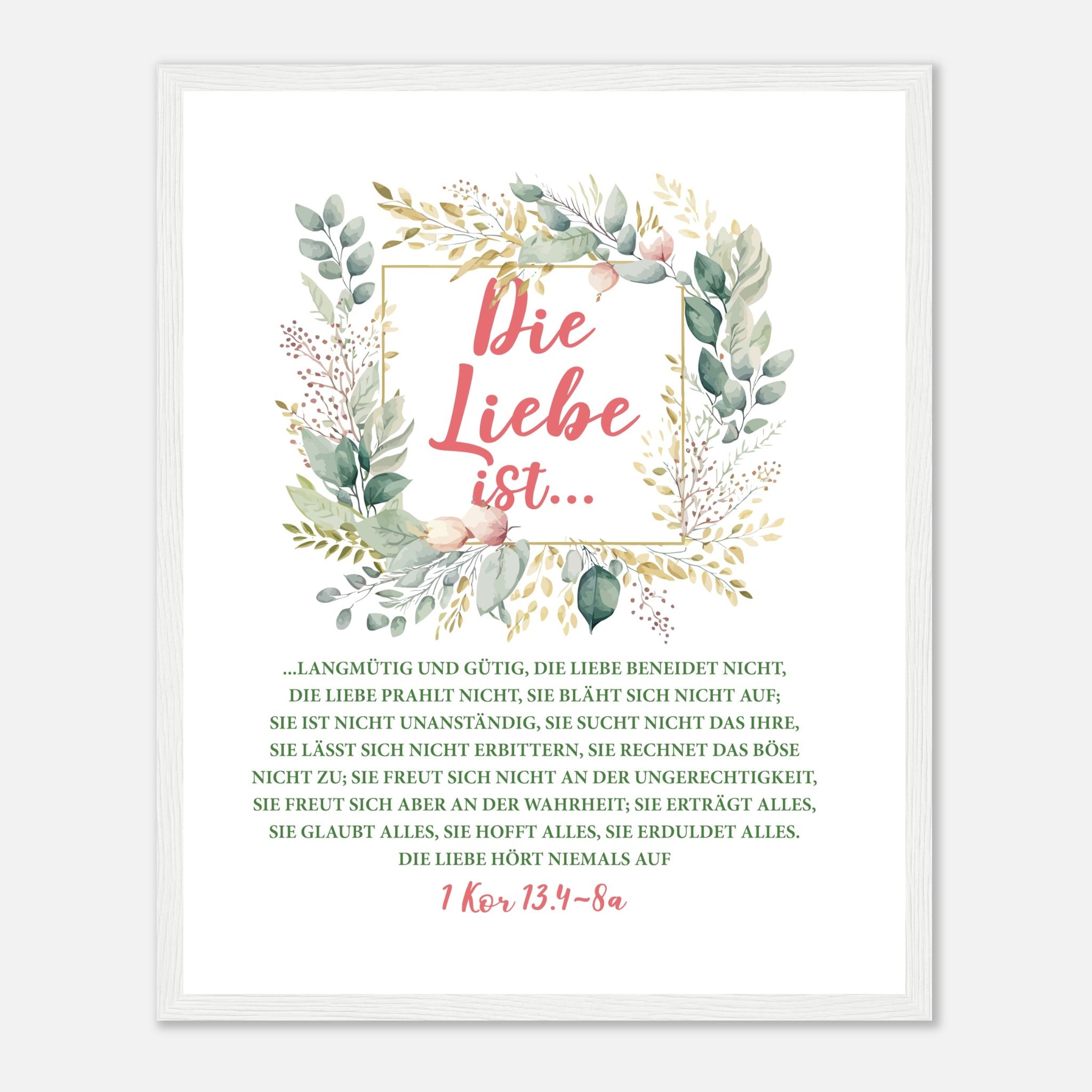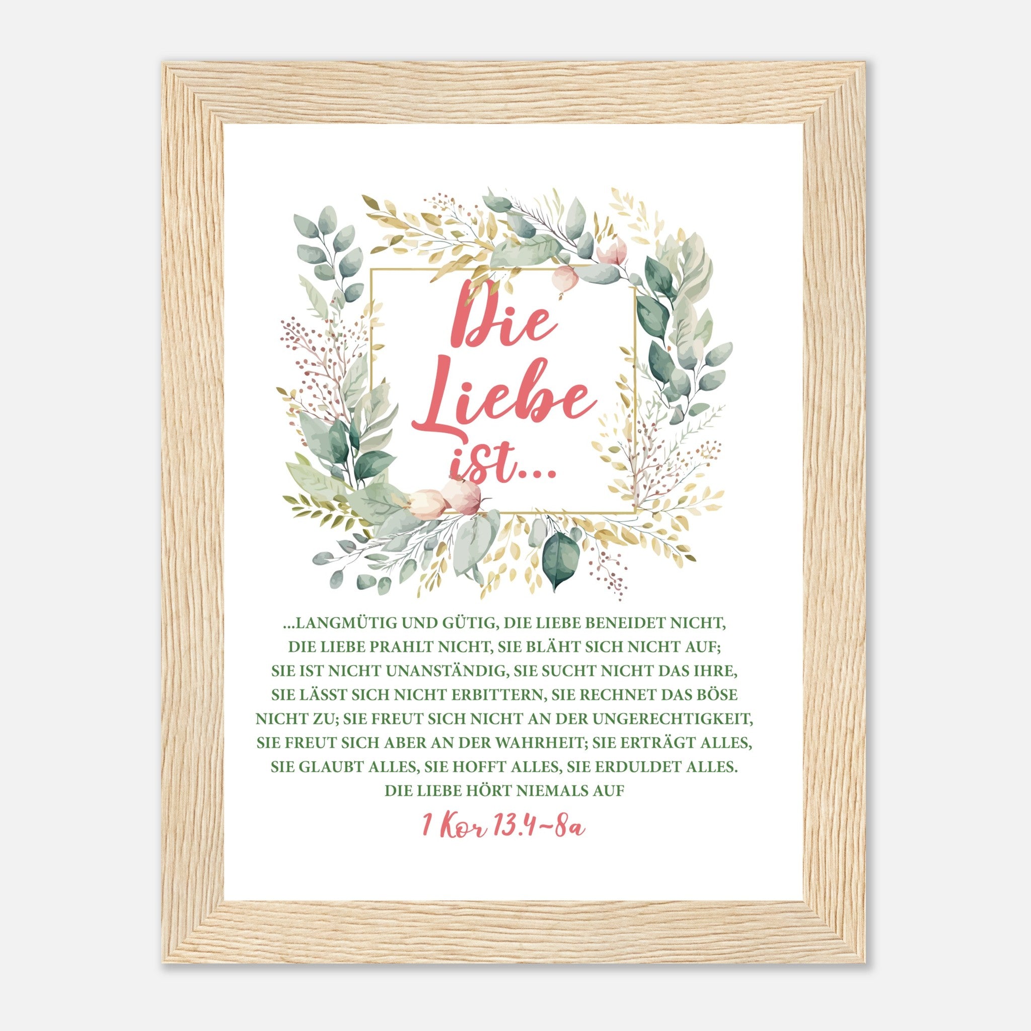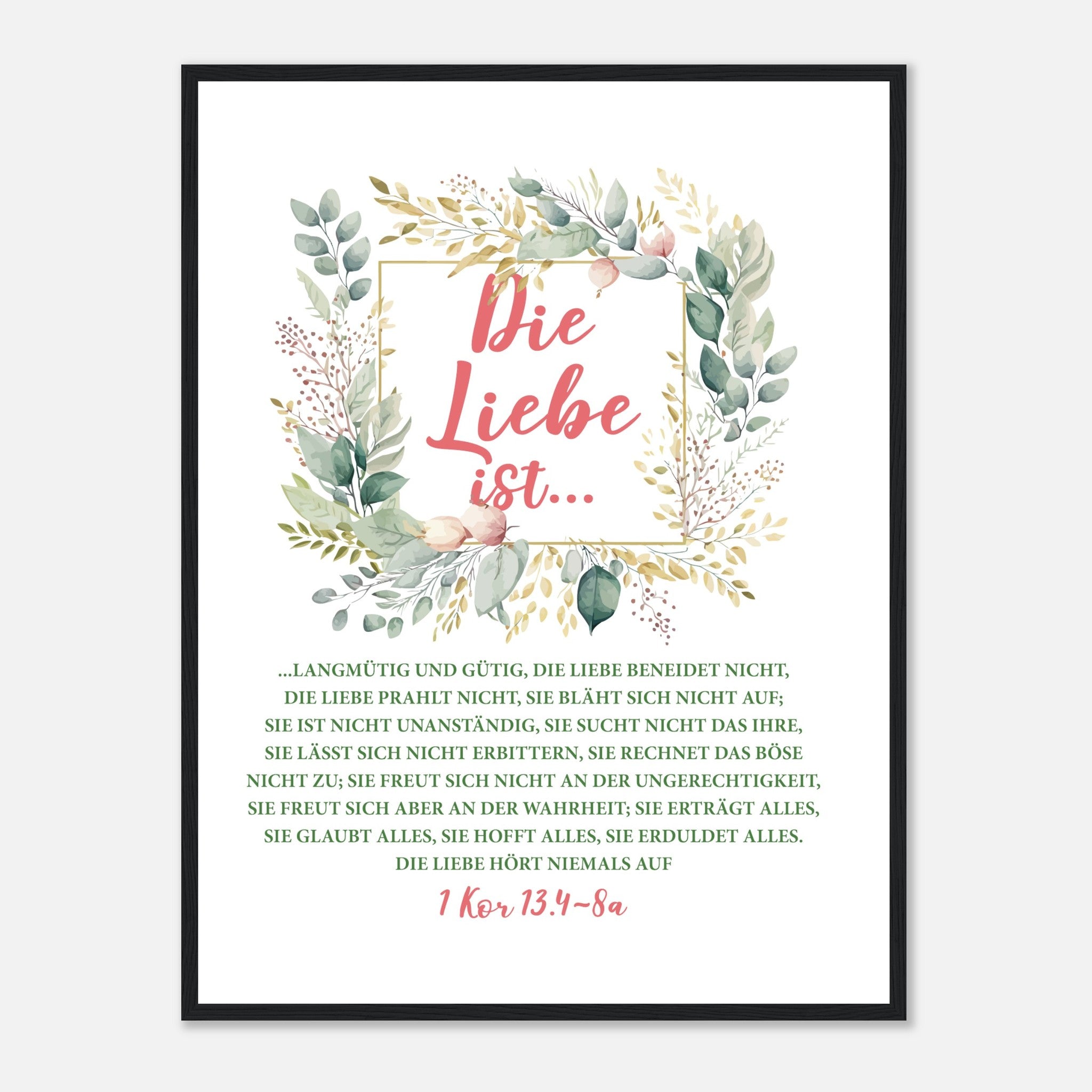 Die Liebe Ist 1 Kor 13.4-8a Poster mit Holzrahmen
