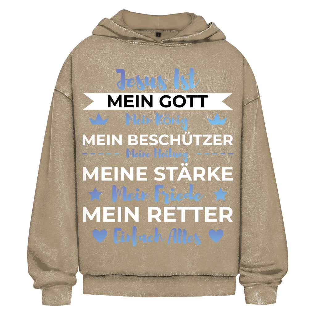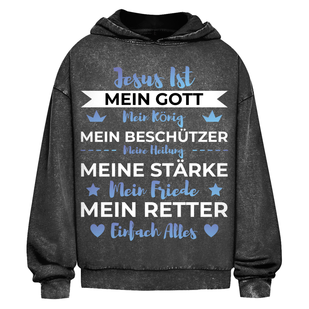Oversize Washed Hoodie jesus ist mein gott